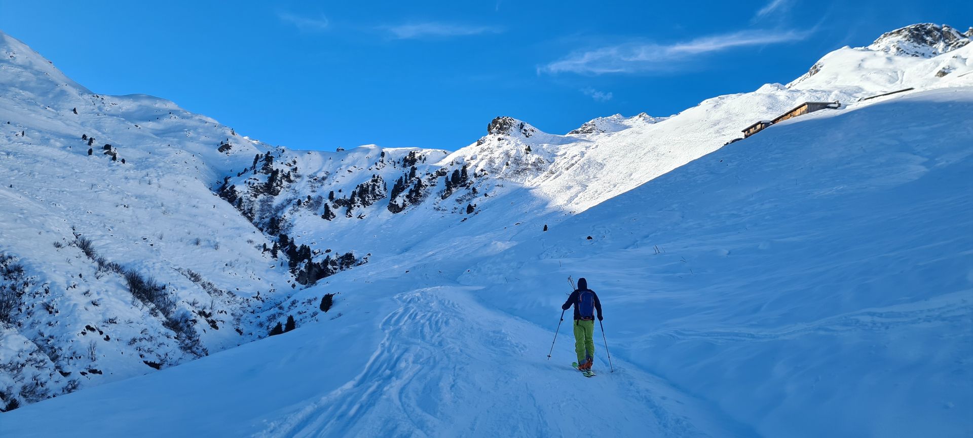 Angeregt durch den Beitrag von Andreas (Dankeschön!), haben wir heute den Kleinen Gilfert erkundet und haben da auch noch (vor allem in den schattigen Flachpassagen) schönen Pulver gefunden. Sonnseitig war der Schnee im Aufstieg feucht und hatte bei der späten Abfahrt schon einen Deckel. Oberhalb von ca. 2200 m war der Schnee auch teilweise windgepresst. Die Hauptabfahrtsrouten sind nun schon recht verspurt. Feindberührung: 1x hat es gekracht, ansonsten, mit etwas Umsicht, jetzt nicht das große Thema.
