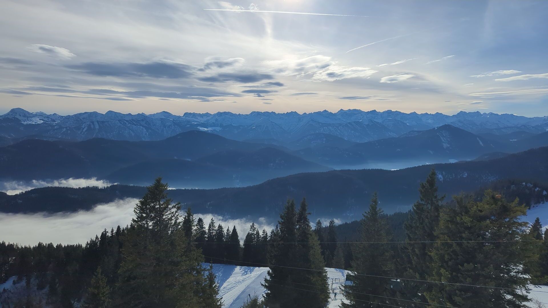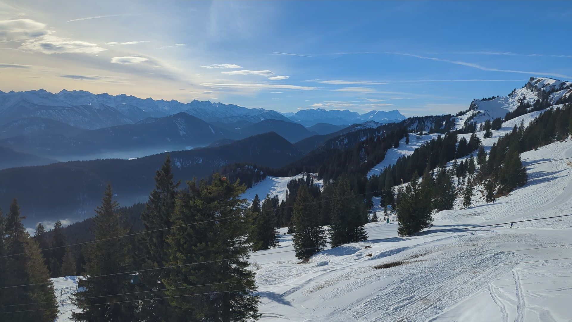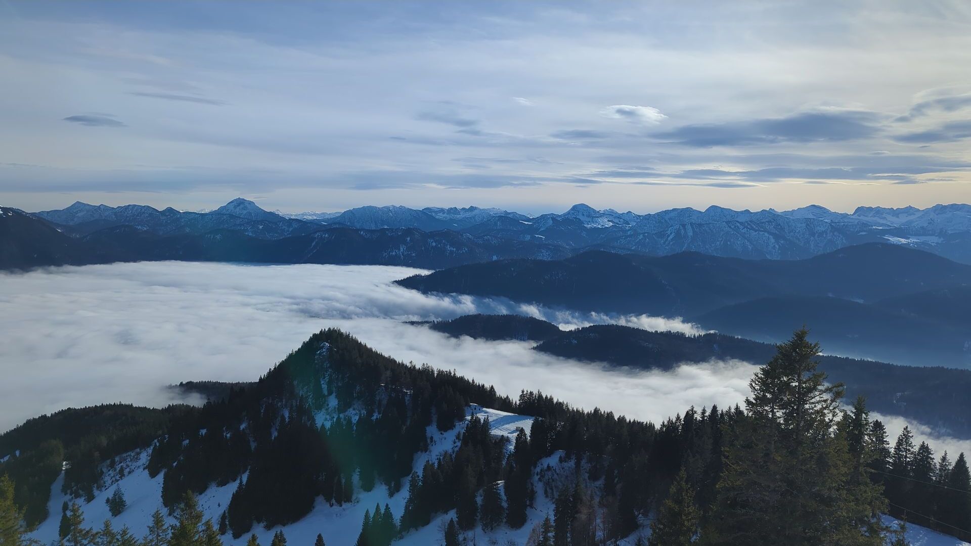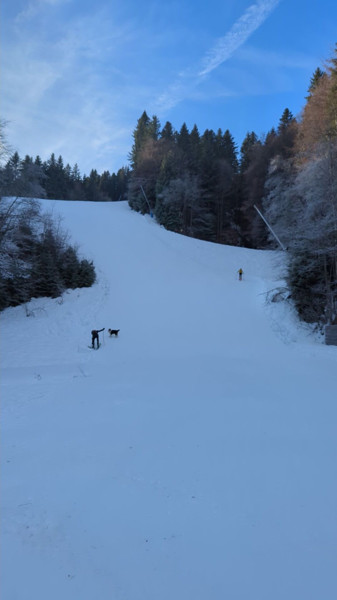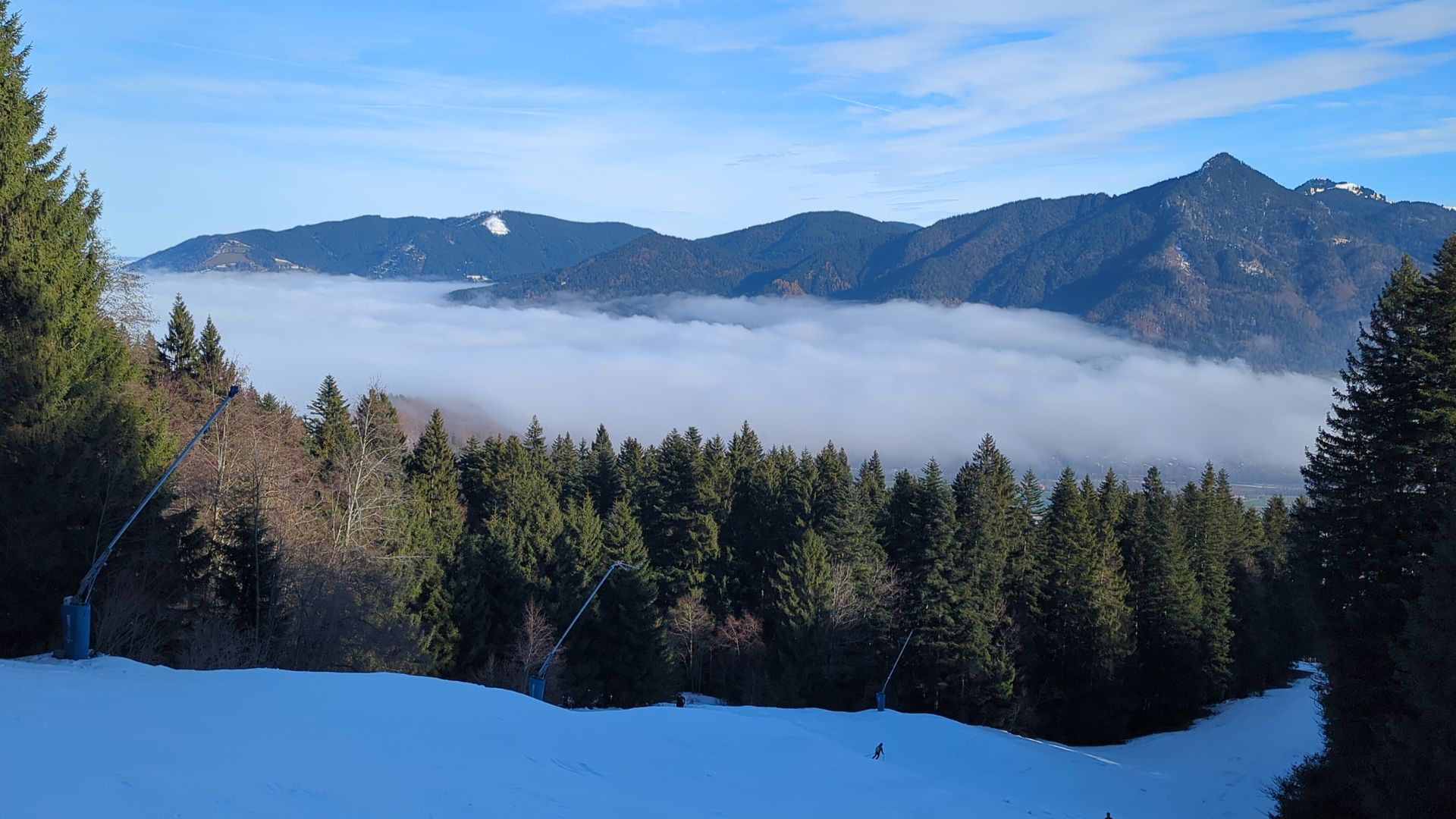 Bevor der Skibetrieb in den nächsten Tagen startet heute den Aufstieg ab Wegscheid Familienabfahrt ausprobiert. Um 10Uhr Sonne im Tal und angenehme Temperaturen.