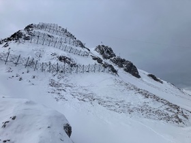 Auf den sonst üblichen Aufstieg zum Grubigstein (Vorgipfel und/oder Hauptgipfel) habe ich verzichtet - teilweise abgeblasen und sah noch etwas steinig aus, da wollte ich mit den guten Skiern nicht hoch.