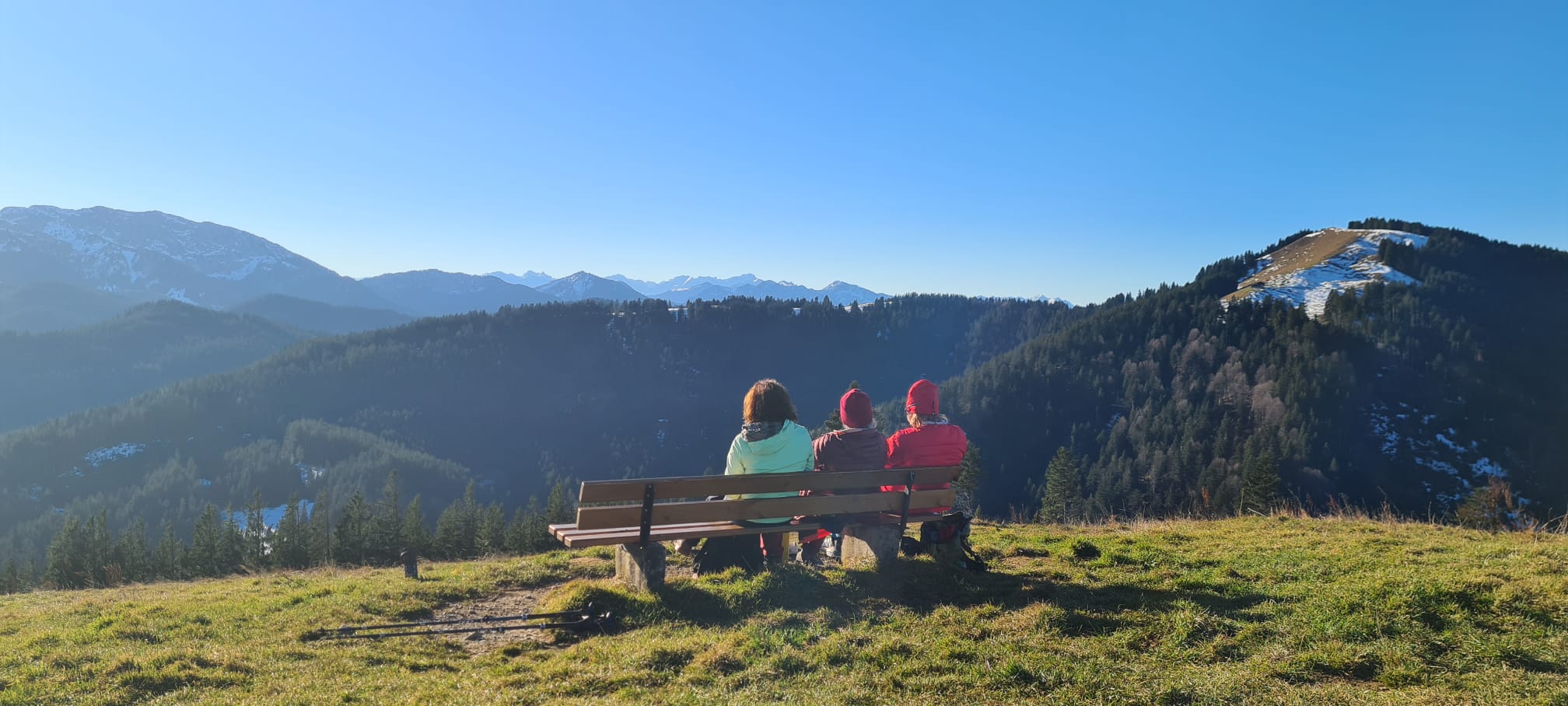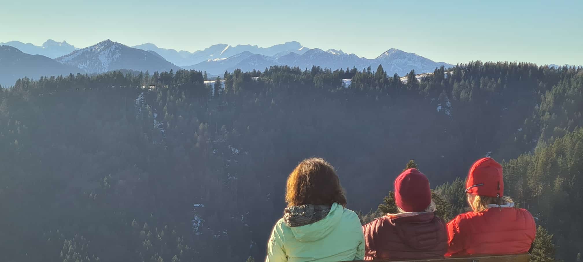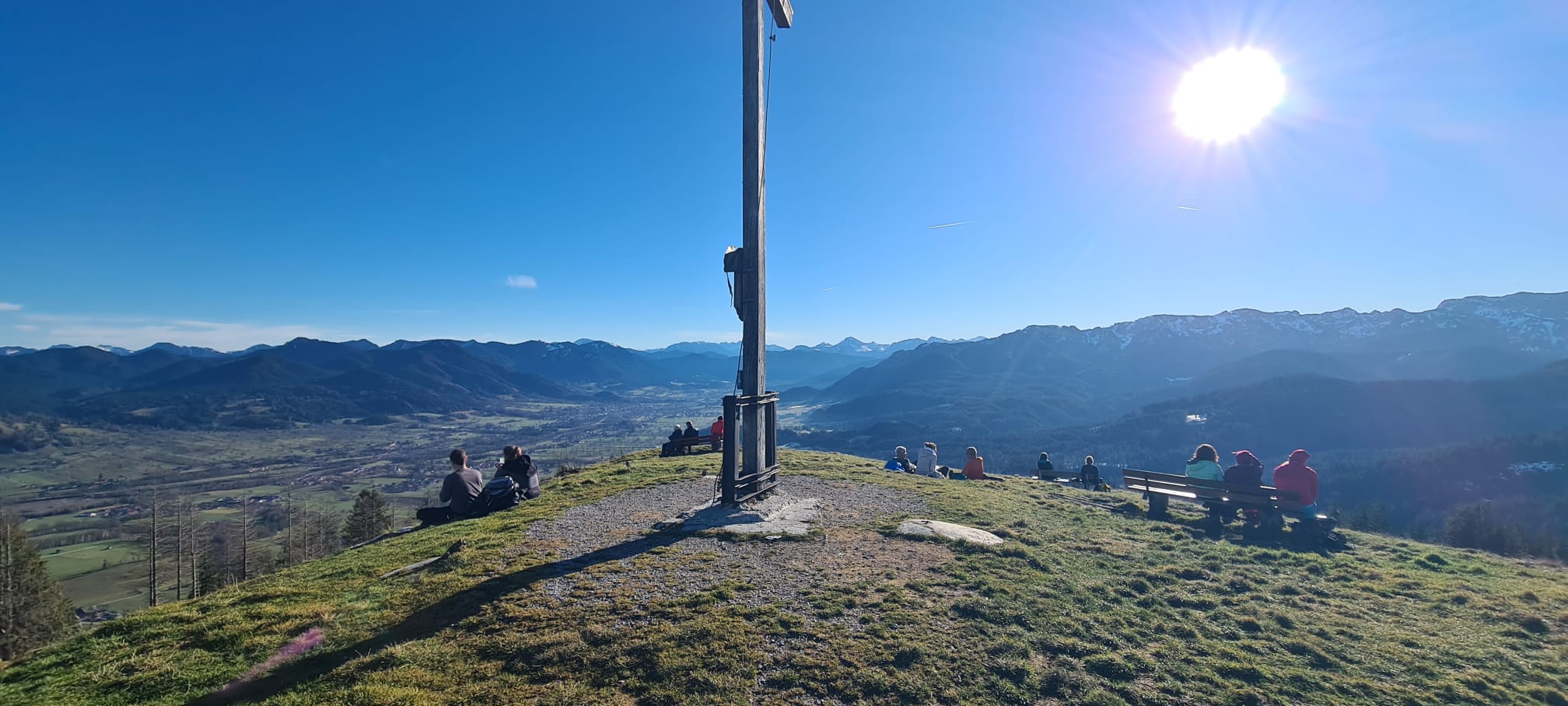 Die Forststraßen-Abschnitte in Talnähe hatten ein paar eisige Passagen, was aber kaum stört, und sobald der Weg anzieht, ist es komplett aper. Sogar die Gipfelwiese war nicht batzig, überwiegend sogar trocken. Auch war es oben wärmer als unten am Ausgangspunkt.