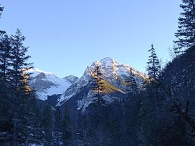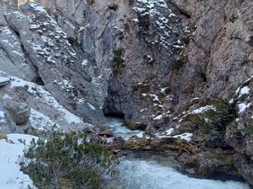 Heute morgen ging es dann "nur noch" nach Scharnitz runter, weil ich mittags mit meiner Freundin in die Sauna gehen wollte. Bis zur Kristenalm erfolgte der Abstieg mit Schneeschuhen, danach bis Scharnitz mit Grödeln, wobei ich auch noch den tollen, teilweise vereisten Steig durch die Gleirschklamm mitgenommen hab. Fantastische Winterstimmung in den schattigen Karwendeltälern!