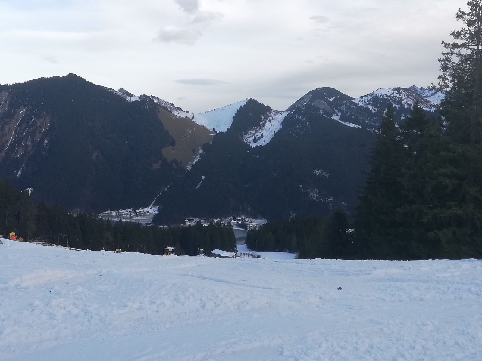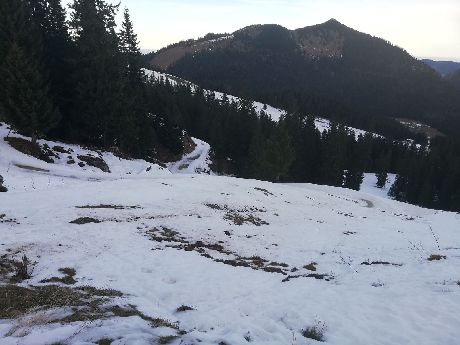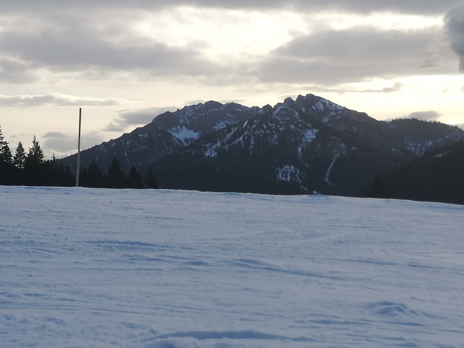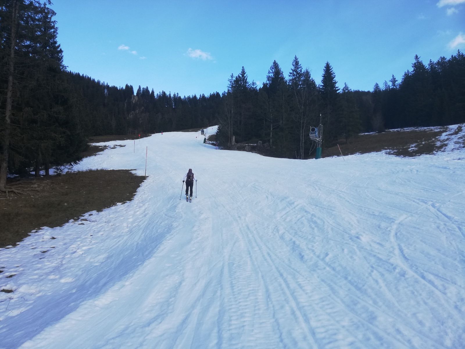 Der Aufstieg von der Jagahüttn zum Gipfel ist noch möglich, die Abfahrt nicht lohnenswert, aber gerade noch machbar. Insbesondere auf der Forststraße schauen an einem etwa 50m langen Stück soviel Steine raus, dass höchste Vorsicht geboten ist oder man trägt hier besser seine Ski. Der Rest ist halt hart.