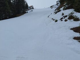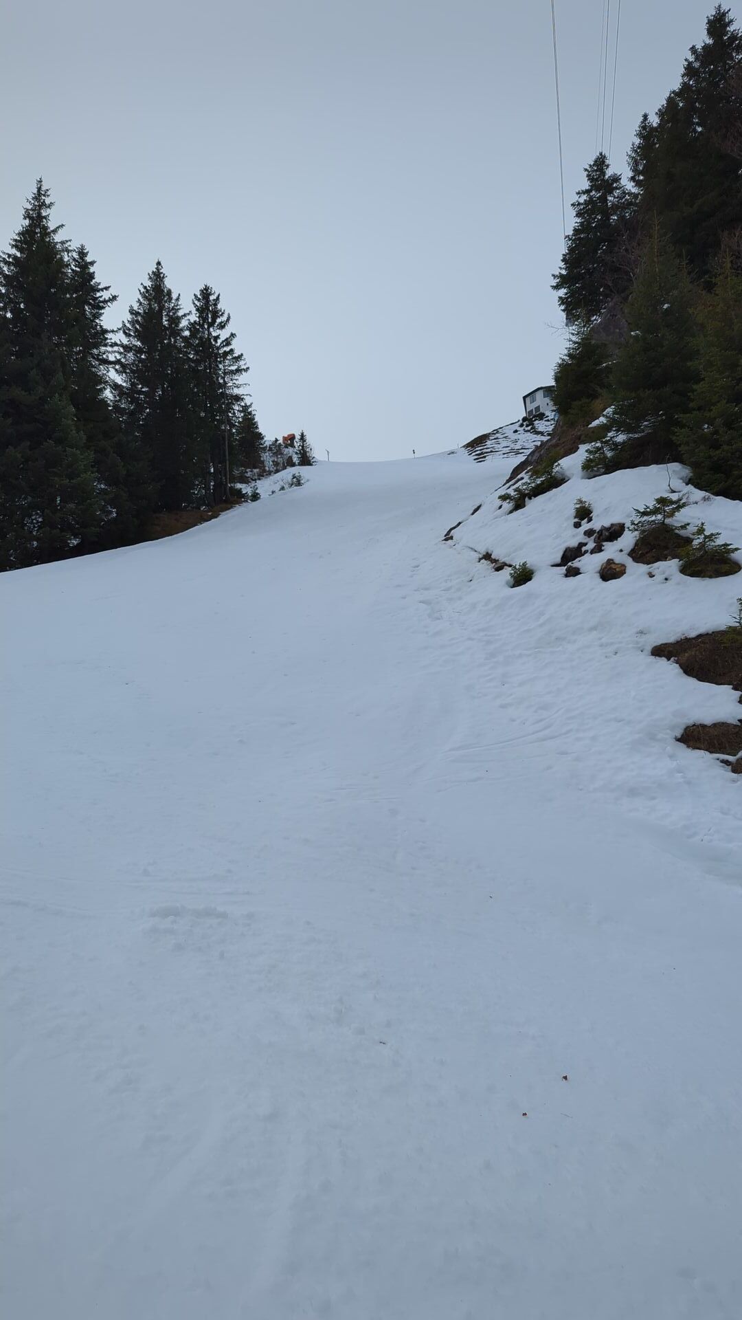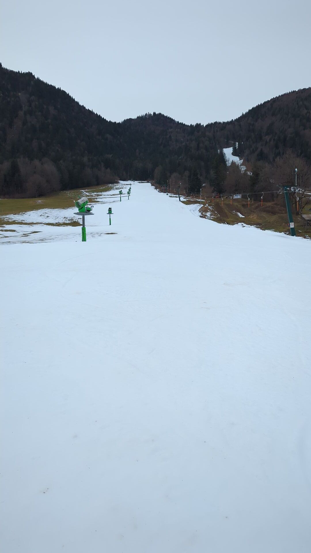 Der Schnee ist hier dick genug dass man erstmal weiter Skifahren kann. Auch die Abfahrt in einem guten Zustand. Gut fahrbar. Hoffen wir auf baldige Rückkehr des Winters. Skibetrieb an Weihnachten wär schon wichtig für die Region!