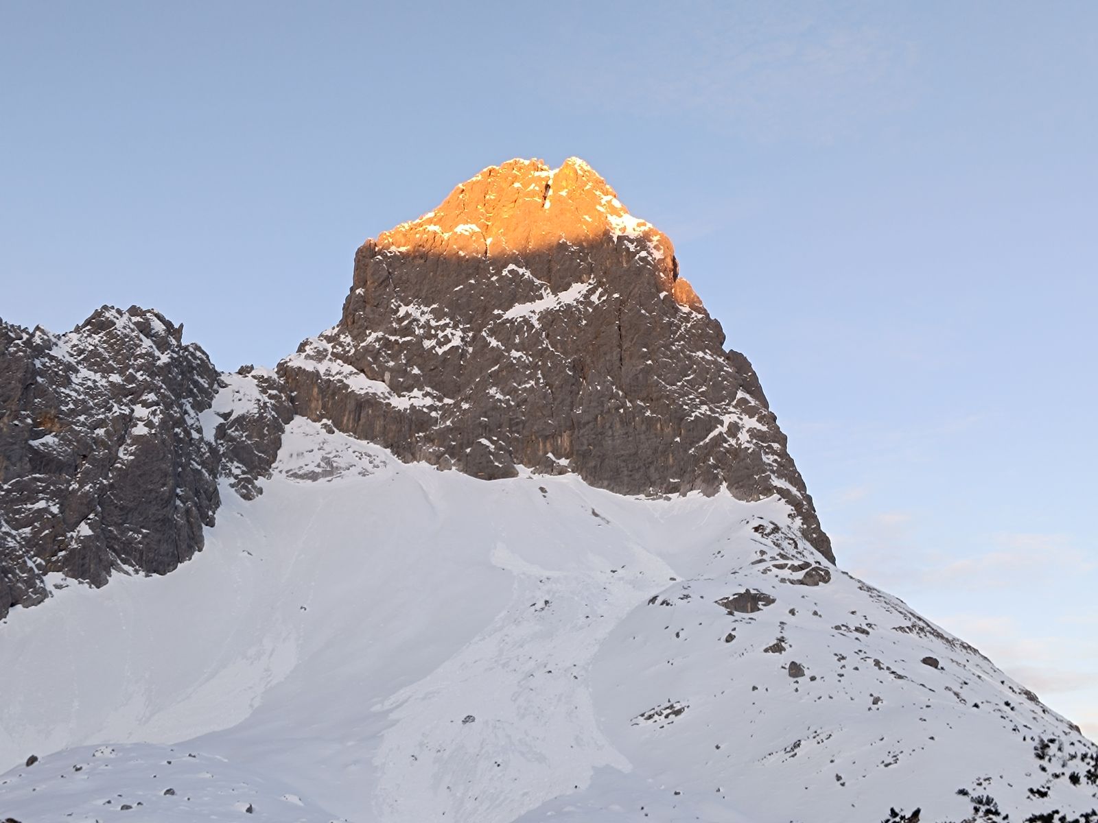 2: Erste Sonnenstrahlen umschmeicheln die Lamsenspitze.