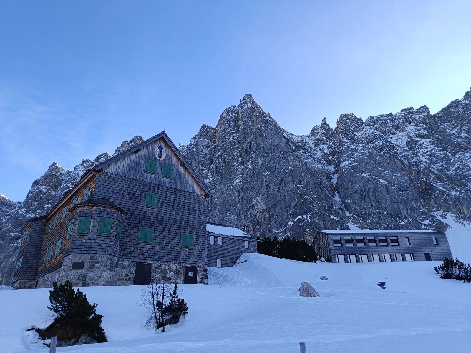 10: Die Falkenhütte und das neue Nebengebäude. Der Winterraum ist allerdings in einem weiteren Gebäude etwas unterhalb.