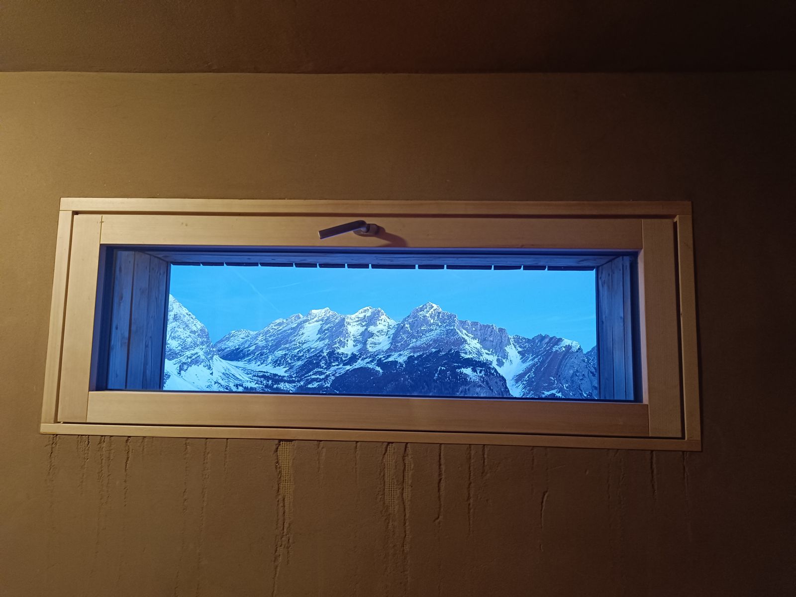 1: Netter Effekt: Das Panorama aus dem Winterraum der Falkenhütte wirkt wie ein gerahmtes Bild.