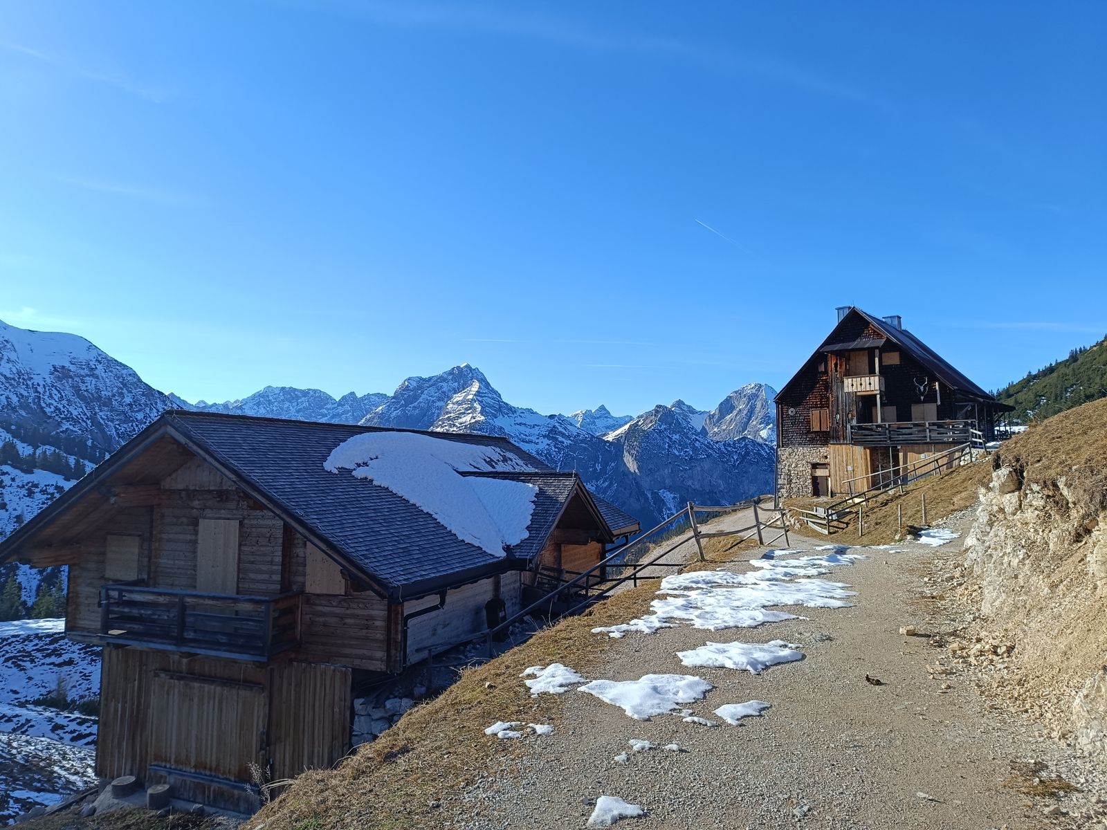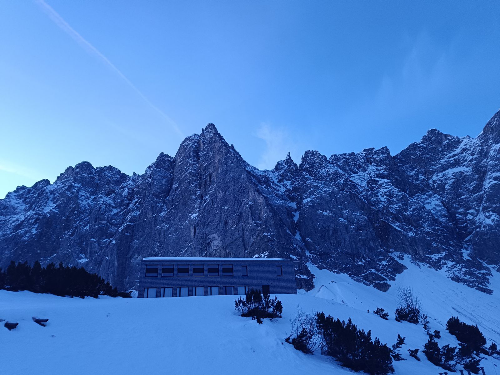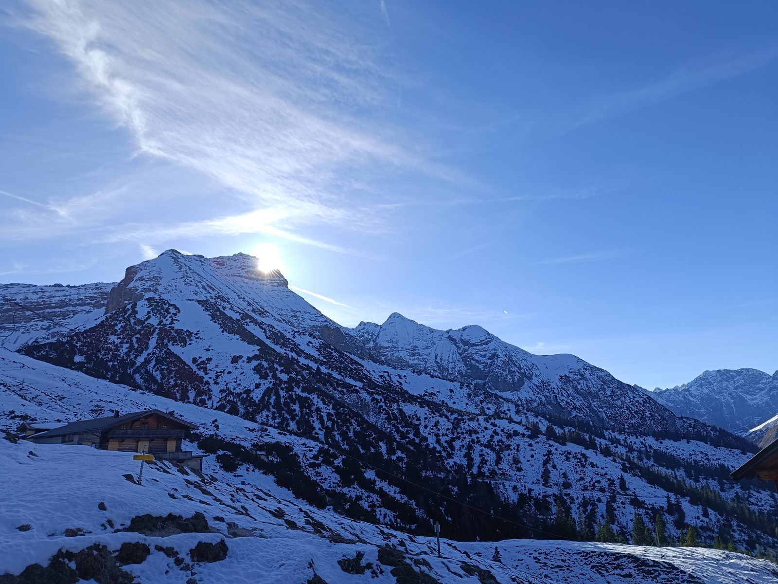 6/7: Die Plumsjochhütte wird in dieser Jahreszeit nur kurz von der Sonne besucht.
