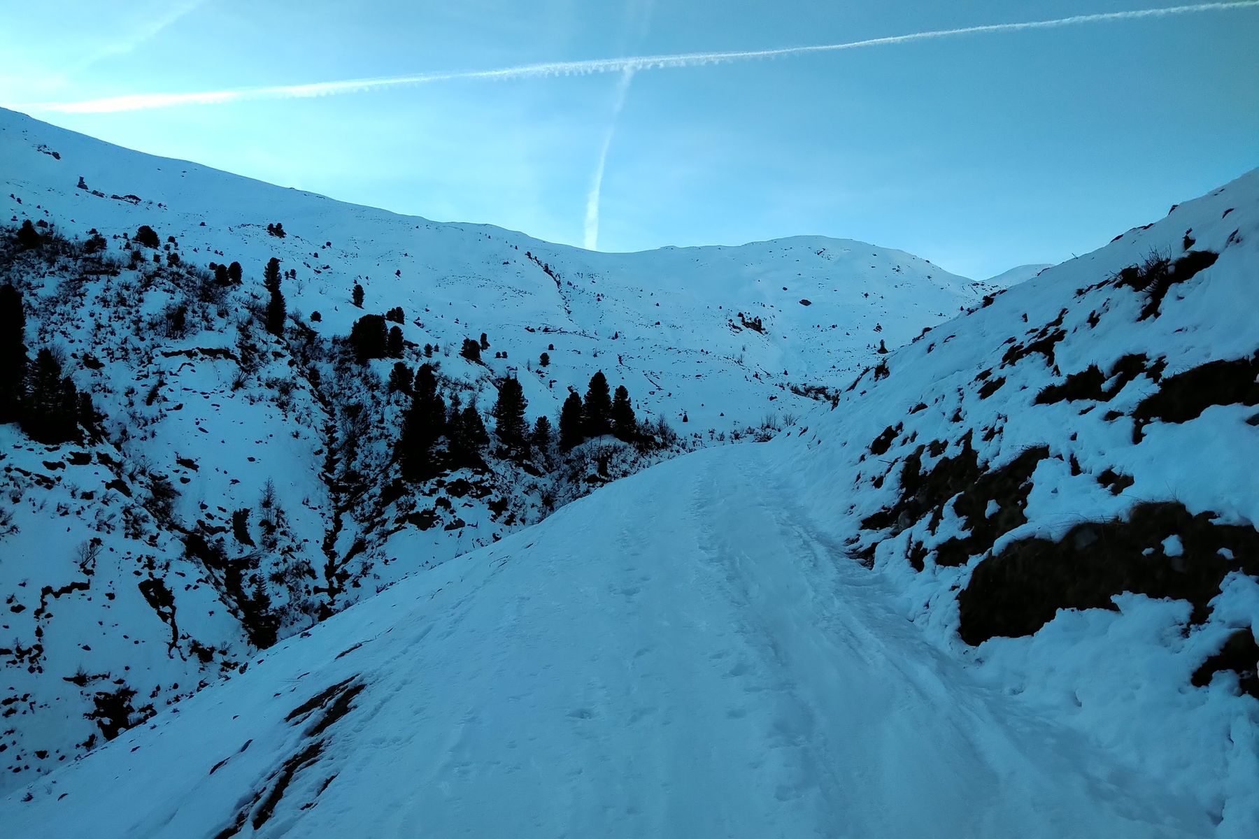 Da das momentan mit einer Abfahrt im Gelände schwierig ist, wollten wir eine halbe Skitouren-Runde machen.
