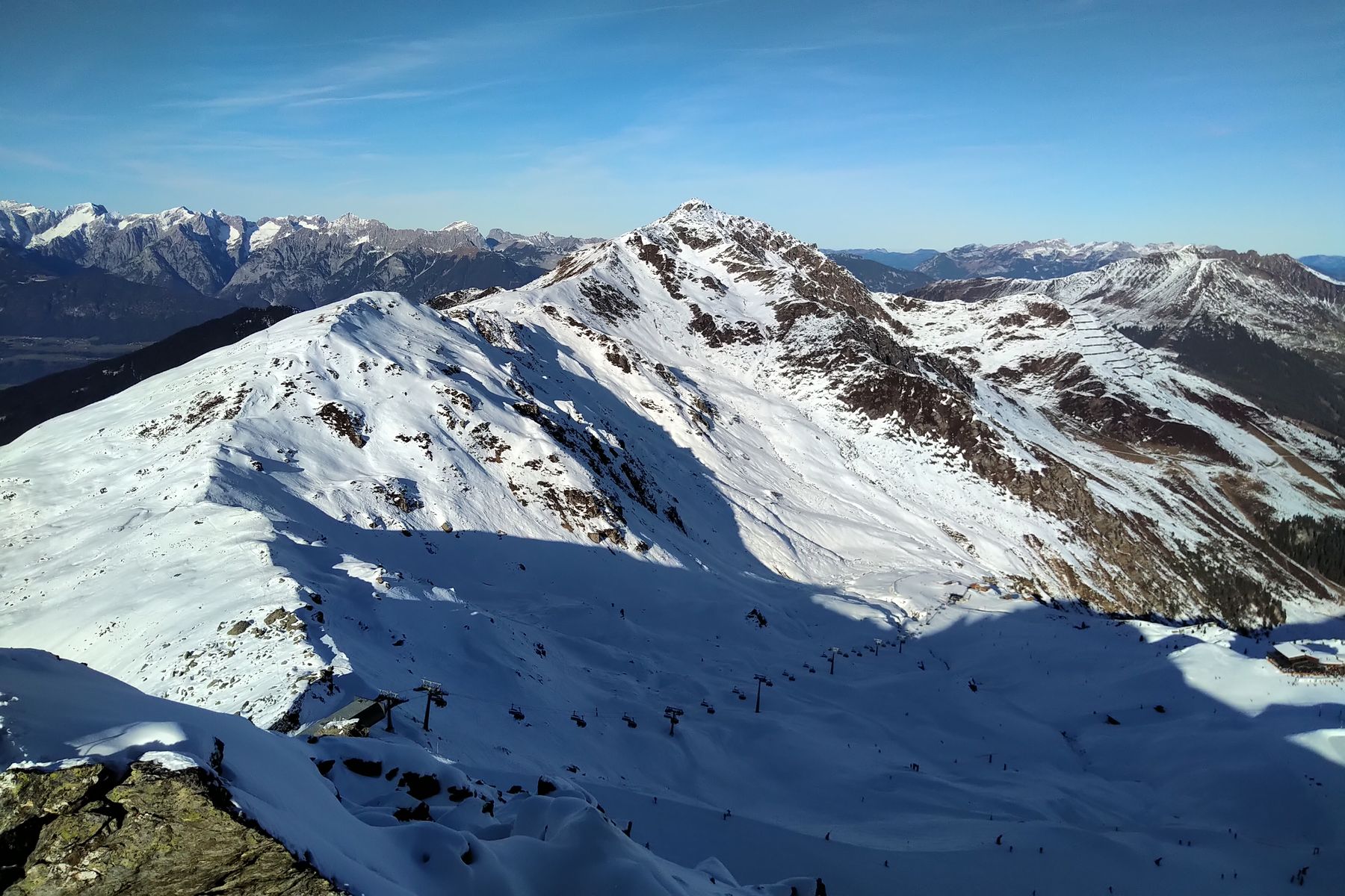 Blick vom Pfaffenbichl zum Skigebiet Hochfügen: