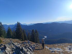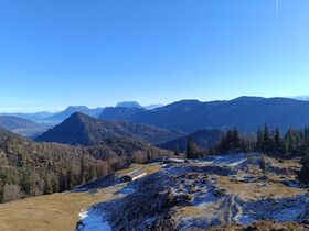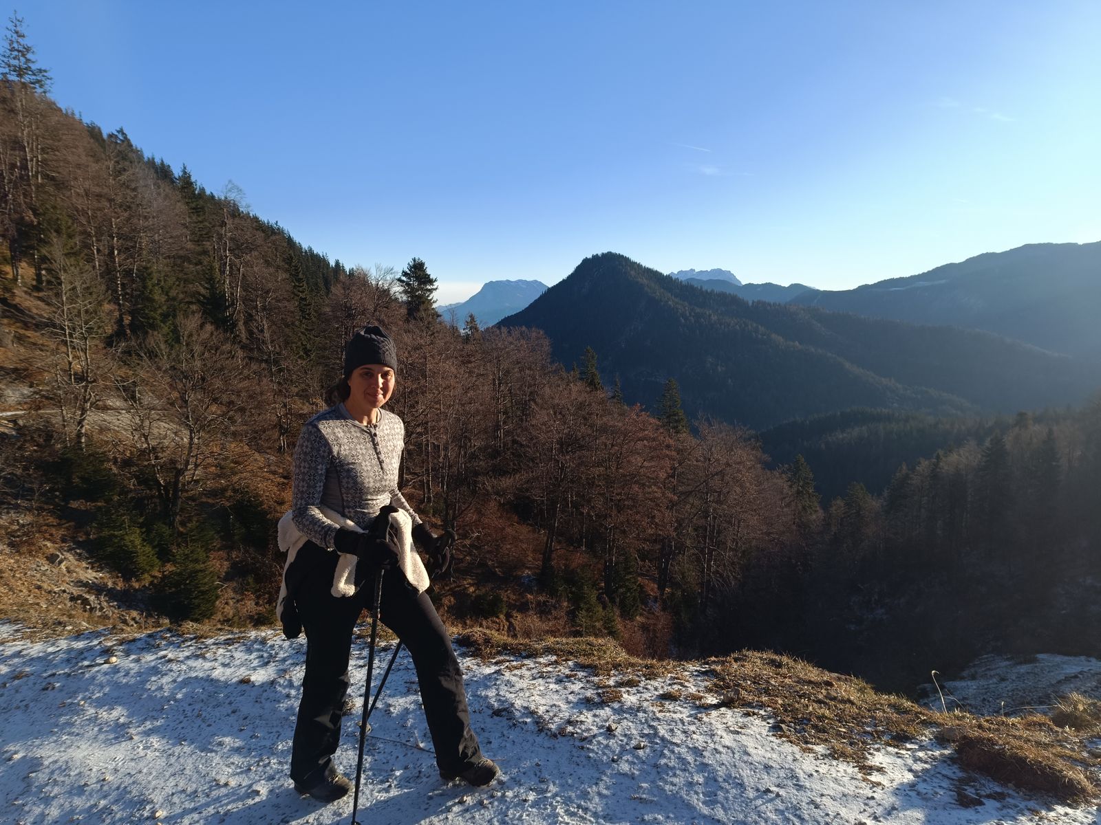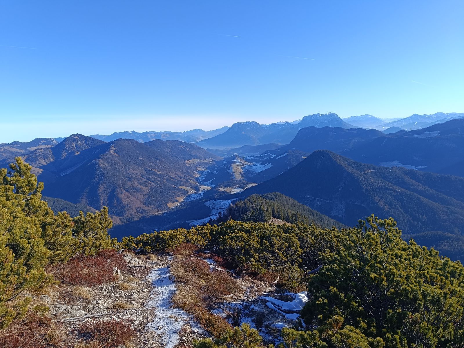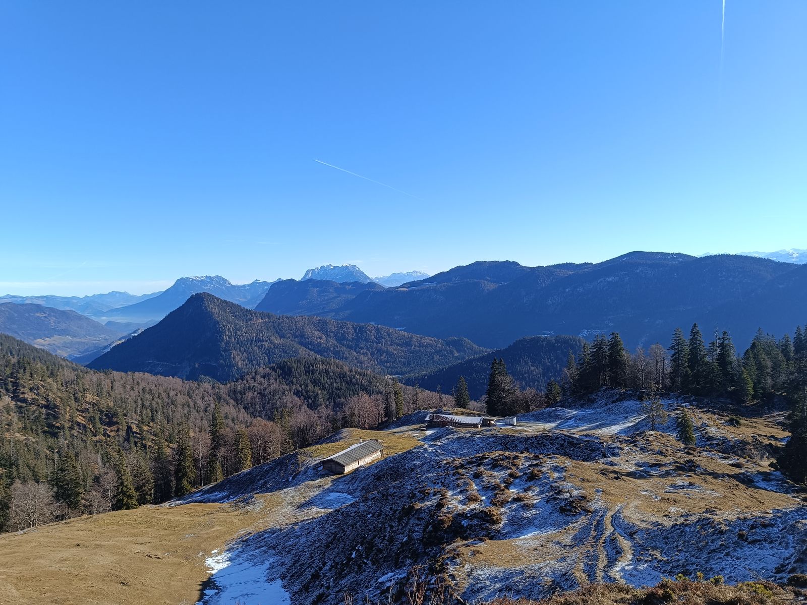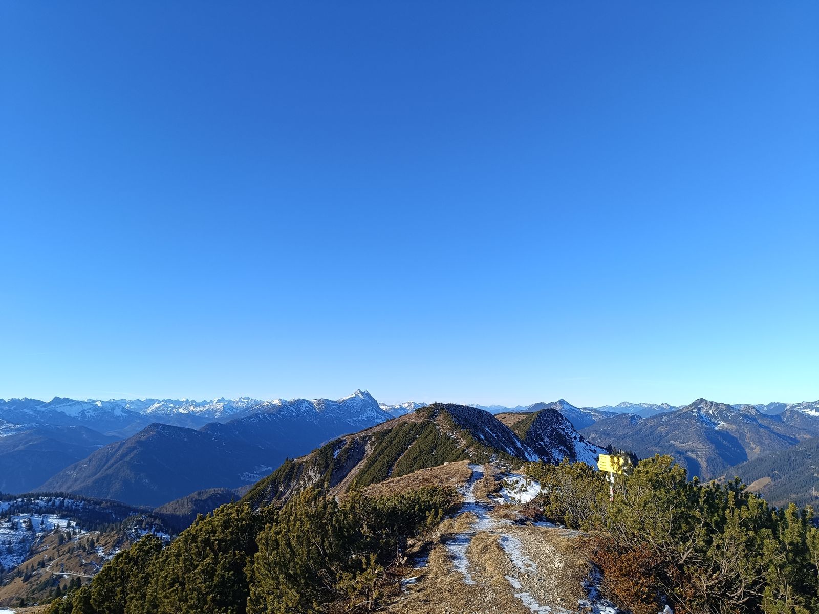 Bevor bei uns in den nebligen Niederungen des Mangfalltals jetzt am Nachmittag die Verwandtschaft vorbeikommt, waren Daniela und ich noch beim Sonne-Tanken in den Bergen. Und dafür bietet sich kaum eine Tour so an, wie die Rundtour über den Veitsberg, wo man kurz nach dem PP in die Sonne kommt und auch fast die ganze Tour lang bleibt.