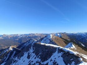 Anforderungen: 1100 Hm, 14 Km, T2-3, 5-7 Stunden. Die Route ist bis auf ein paar schattige Ecken komplett schneefrei; lediglich am "Gipfelgrat" harter Schnee - hier waren Grödel angenehm.