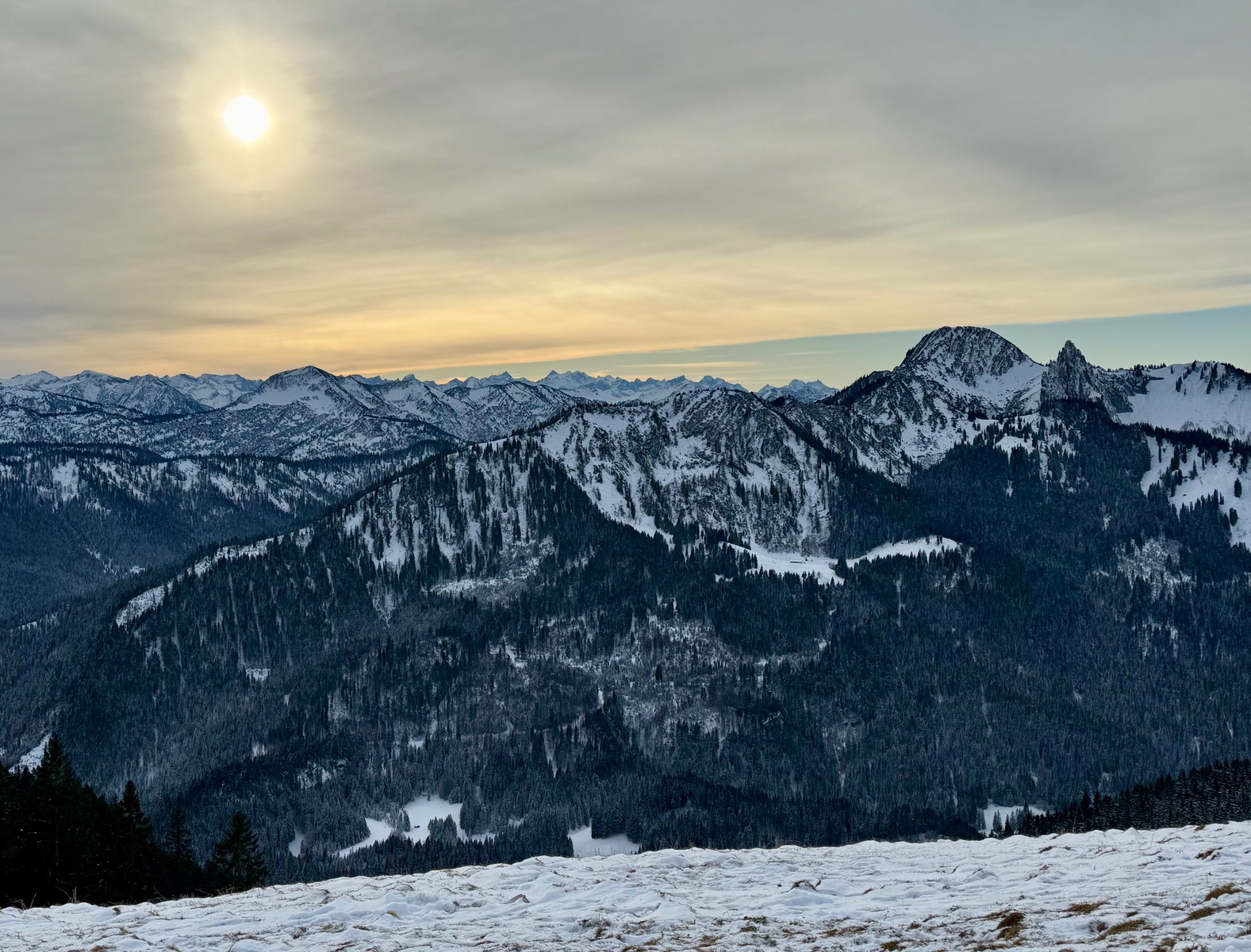 Heute Nachmittag mal wieder hoch zum Spitzingsee. Da alles weiß ist kurze Abfahrt runter Richtung Albert Link Hütte und über den Waldweg hoch zu Haushamer Alm, Grünsee, Roßkopf. Für den Aufstieg reicht der Schnee gerade so. An manchen Stellen schauen schon viele Steine und Gras raus aber man kommt immerhin abseits des Pistentrubels rauf![]()