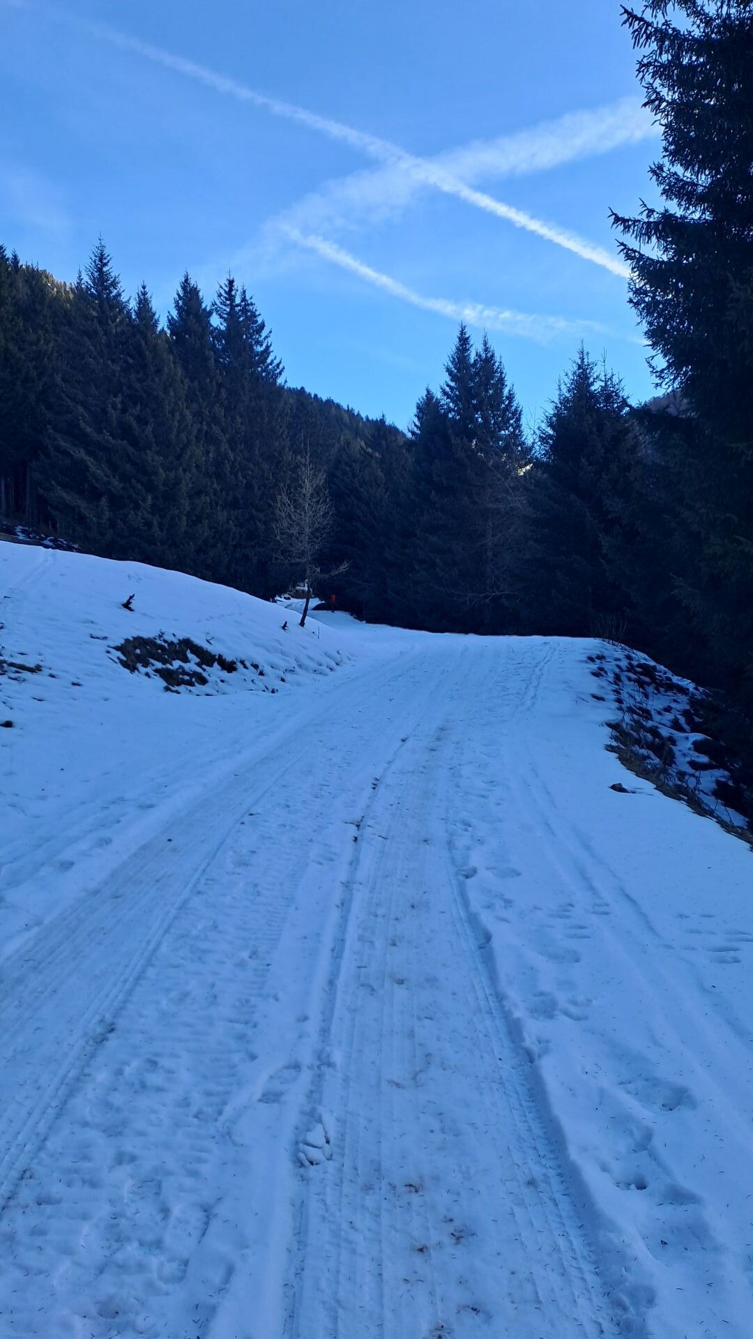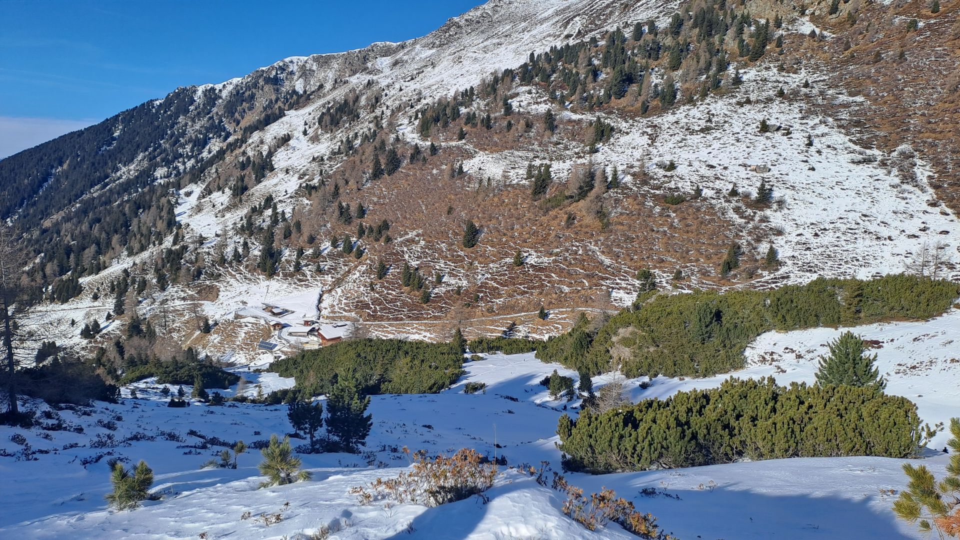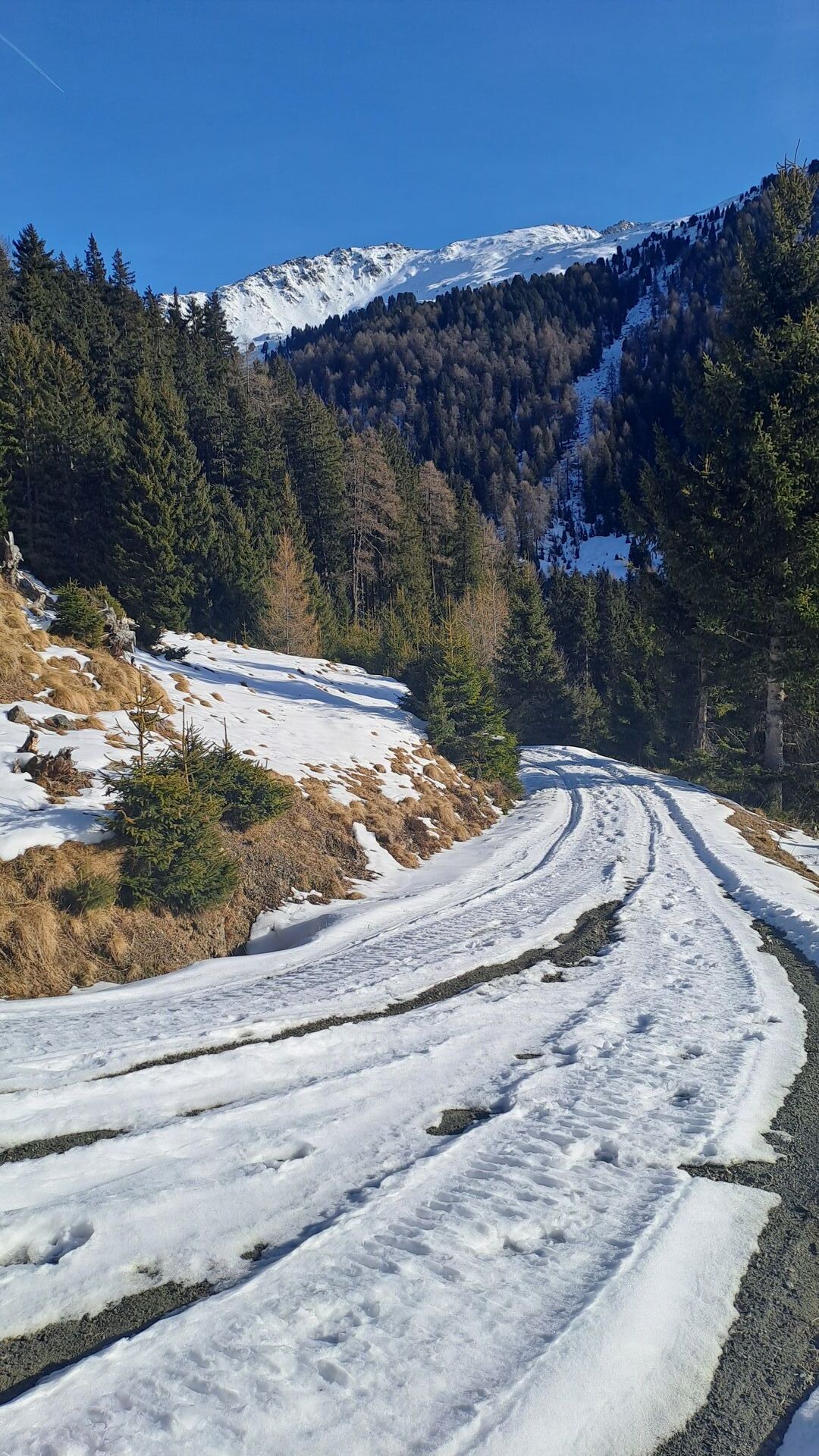 Auch der Fahweg Richtung Arztaler Alm ist erstmal aper.
