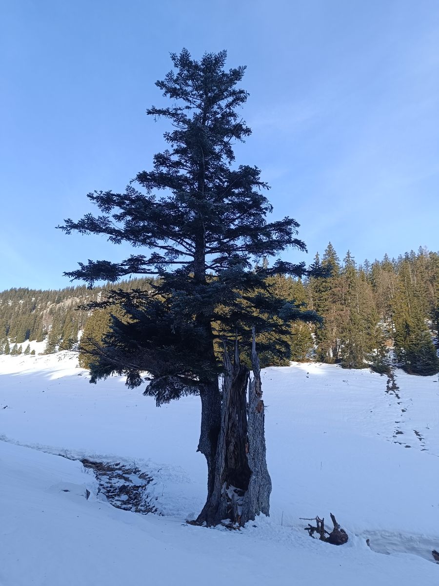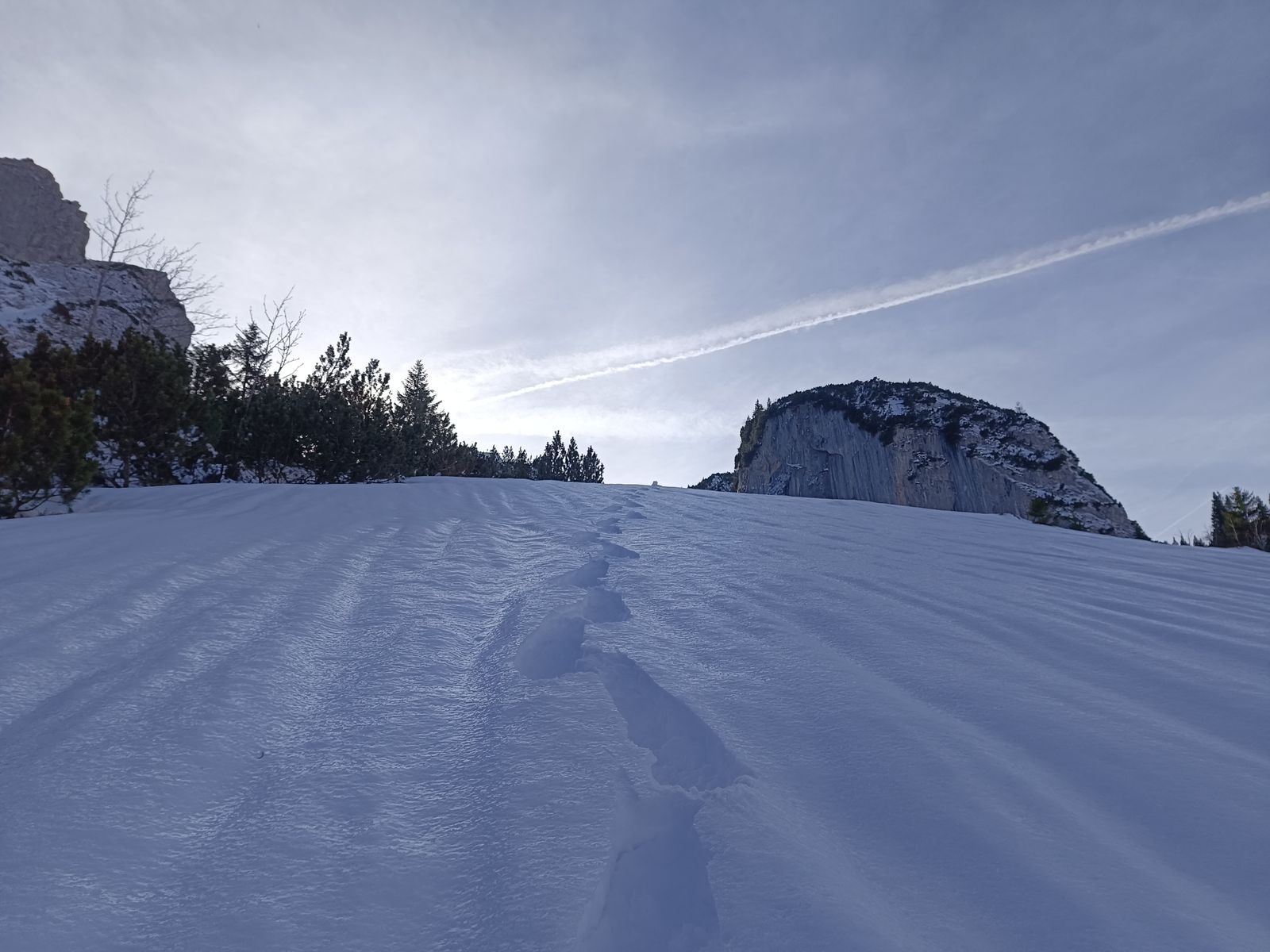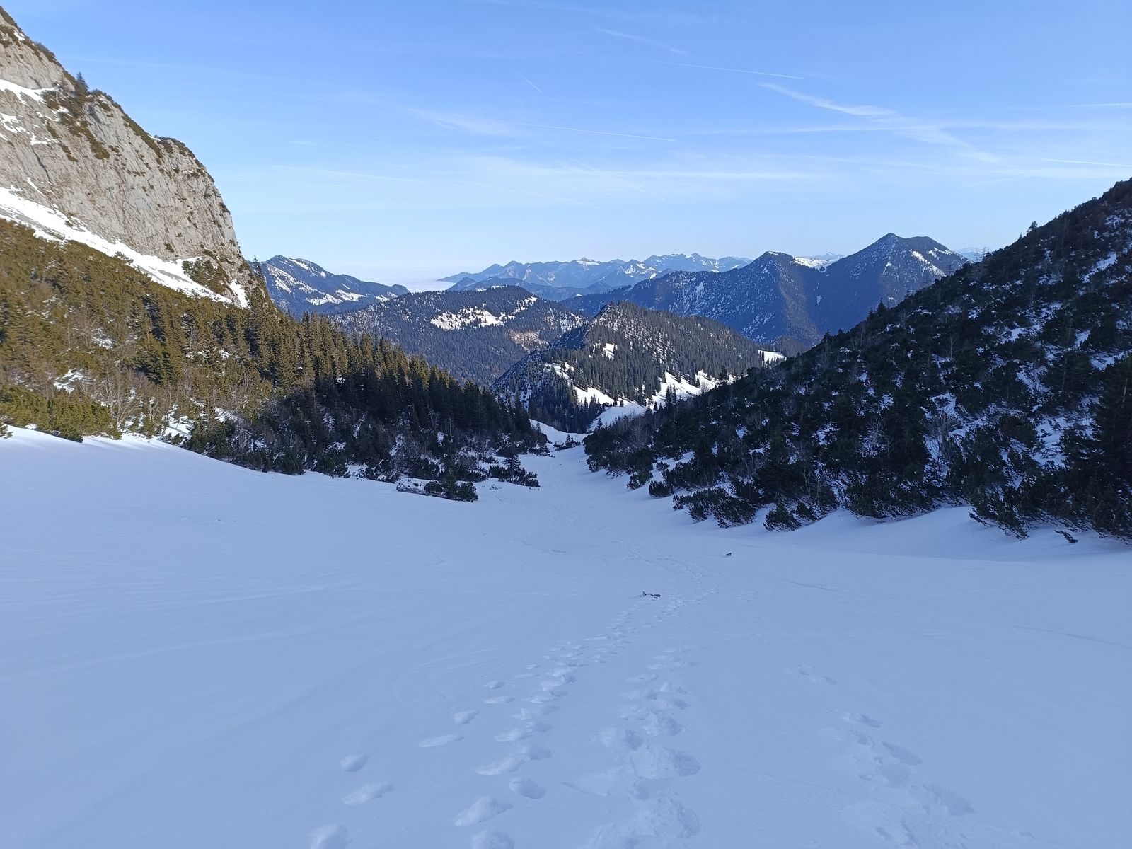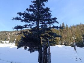Mit Schneeschuhen geht's hingegen sehr gut, aber freilich darf in der Nähe des Spitzings auch der unbedarfte Wanderer ohne jede Winterausrüstung nicht fehlen, damit auch ja jemand die Spur zertrampelt. Sicher meint da mancher, der Tourismusverband lege die Spuren extra für Winterwanderer an.