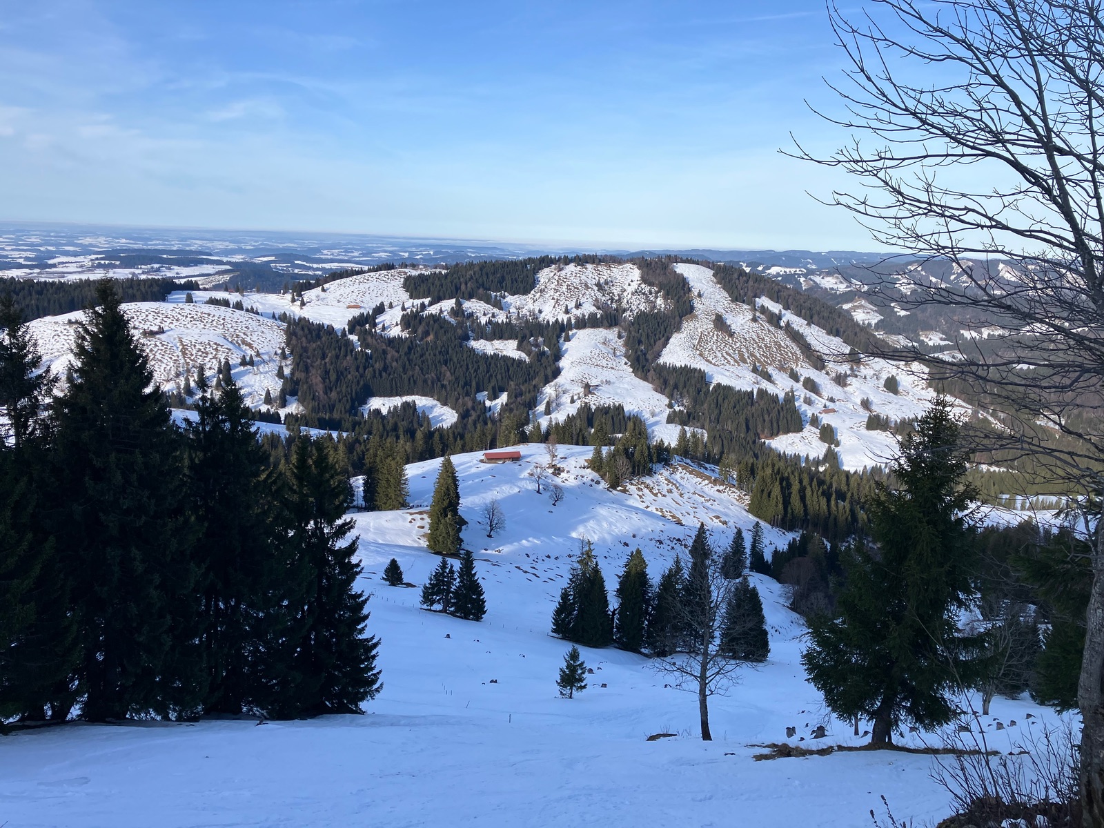Das Imberggebiet vom Gipfel, hinten das schwäbische Flachland:
