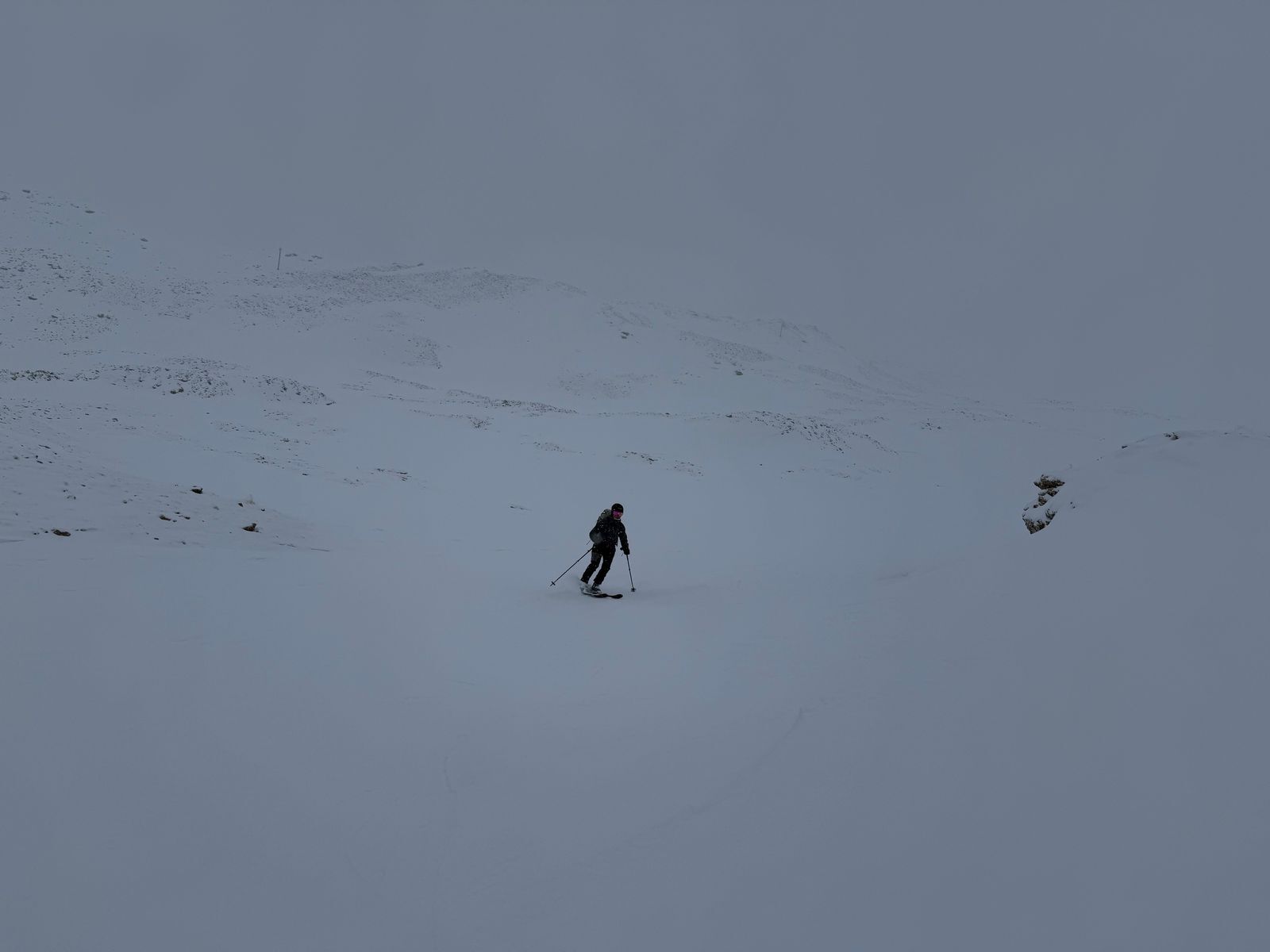 Abfahrt vom Piz da Val Gronda bei schlechter Sicht: