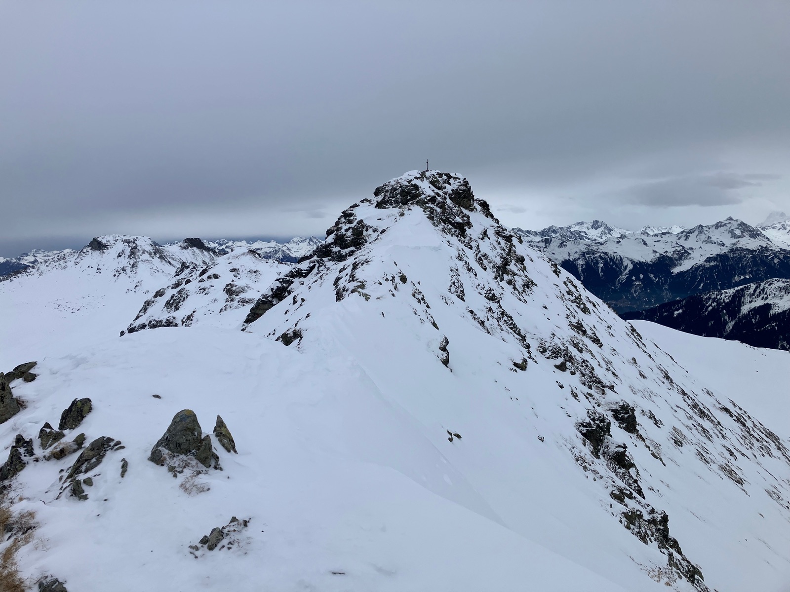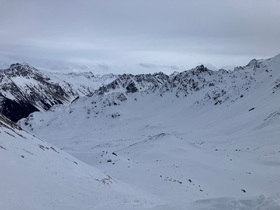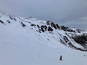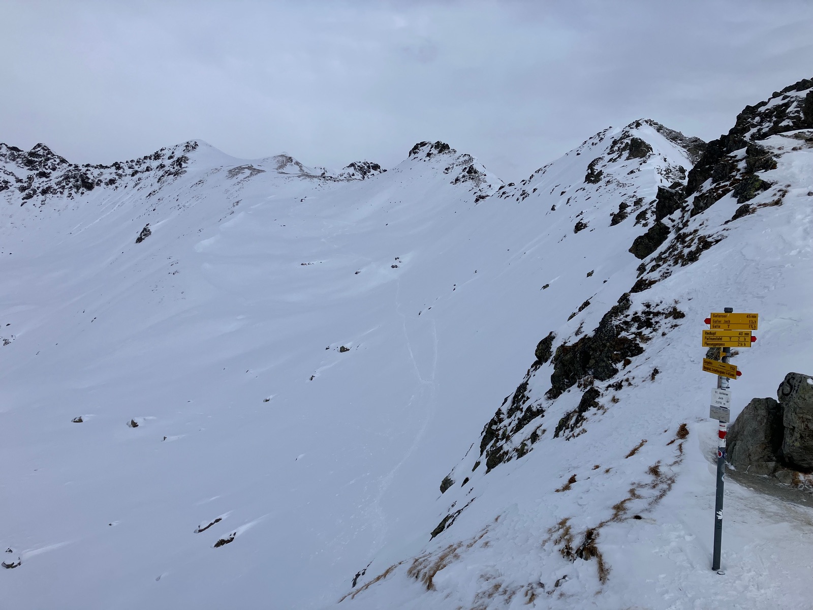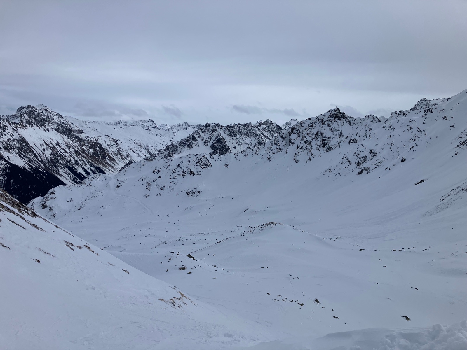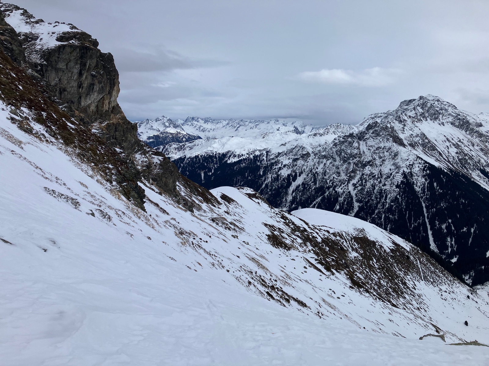 Heute angesichts der angekündigten Wetterverschlechterung (kam aber erst am Abend) nur eine kurze Tour auf den Riedkopf (Beschreibung siehe Tourentipp-Archiv). Ich bin allerdings, um das Pistengelände im Aufstieg zu vermeiden, über die Rongg-Alpe aufgestiegen (die Alternativabfahrt aus der Beschreibung). Statt Variantenabfahrten empfiehlt sich zur Zeit ja der Aufstieg über ebendiese, um die Pisten abzufahren. Die südseitige Querung nach dem Sattel auf ca. 2.200 m ging heute sehr gut - zwar wenig Schnee, aber dieser hart gefroren und alle Lawinenzüge entladen. Im oberen Talkessel bin ich dann konsequent auf dem Rücken geblieben. Für den Gipfelanstieg fand ich die SnowLines angenehm. Abfahrt bis zum St.Antönier-Joch teilweise windgepresster Schnee, dann meistens guter Pulver. Aber auch hier fehlt halt einiges an Schnee und so ist es nicht entspannt zu fahren - trotz großer Vorsicht habe ich mir auch 2x Schäden in die guten Skier geholt. Die Abfahrt über die Pisten geht gut.