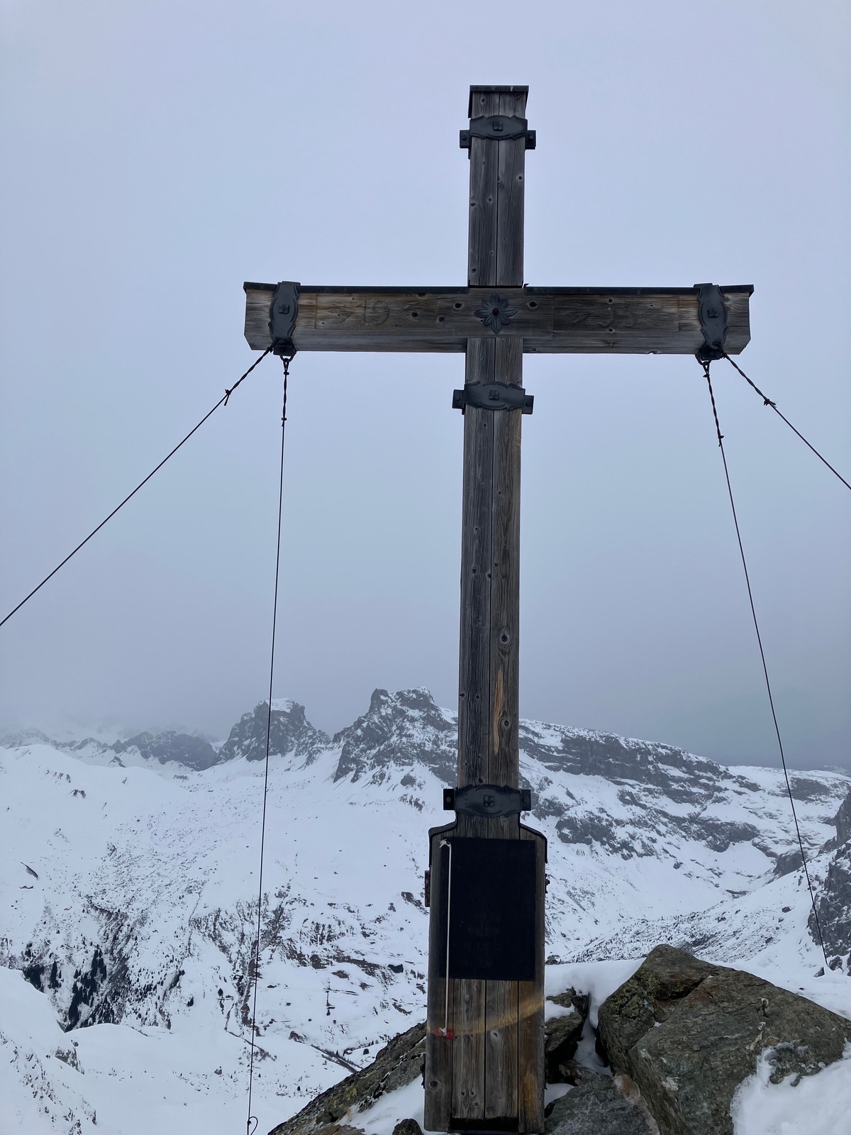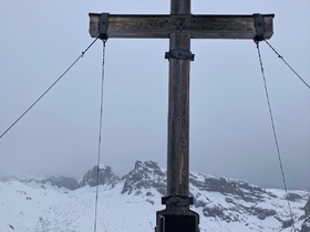 Tolles Rätikon-Panorama hinter dem Gipfelkreuz: