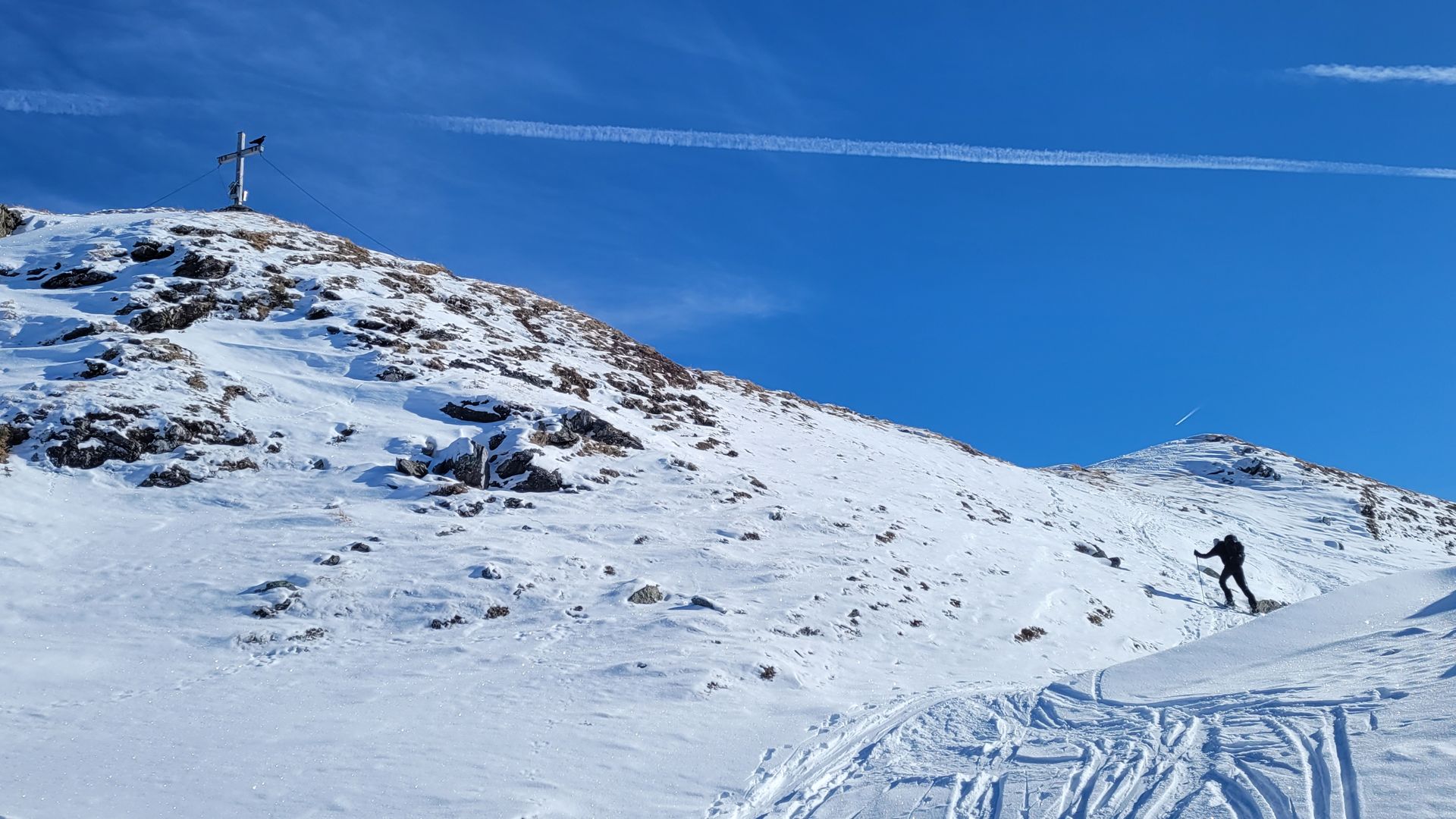 Aufstieg mit Skiern auch auf dem Wanderweg durchgehend machbar. Waldgürtel gut begehbar, danach gute Spur. Im Gipfelbereich erwartungsgemäß stark verblasen, steinige Abfahrt in diesem Bereich.