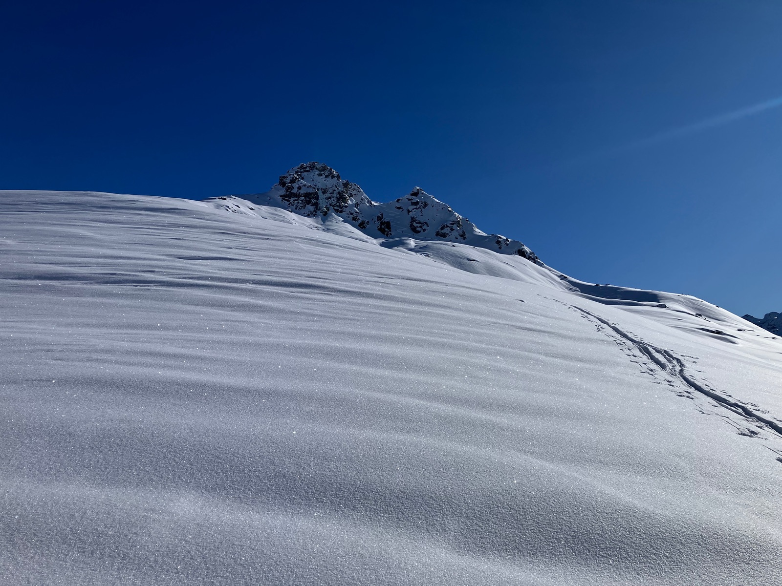 Die Rotbühelspitze wurde scheinbar auch viel begangen - mir wäre es wahrscheinlich lawinentechnisch zu heikel gewesen (also jedenfalls für die ersten Begeher):