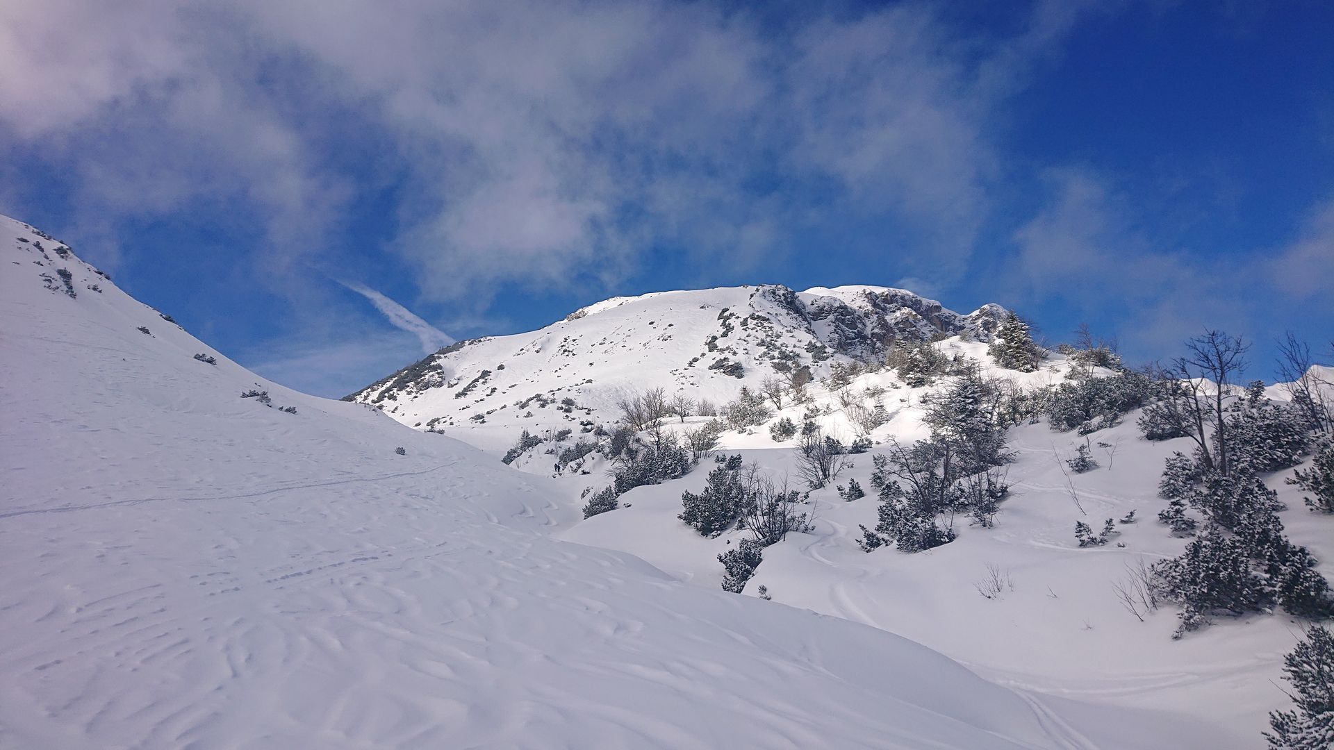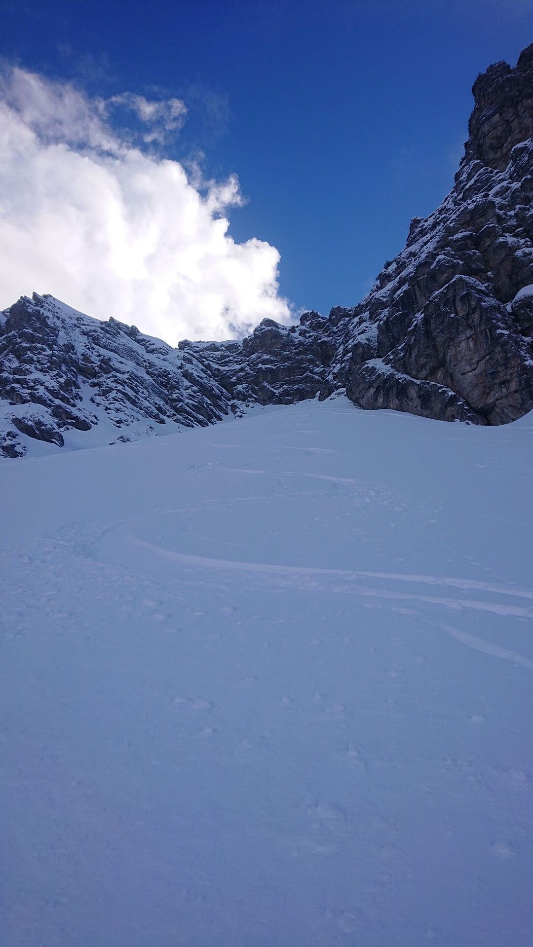 heute habe ich mir mal wieder eine etwas größere Runde im allseits bekannten Tannheimer Tal gegönnt. Wegen dem morgendlichen Regen/Schnee ging es etwas später als geplant um 09:30 am Haldensee los (6€ Tagesticket). Ab 1500m hatte es etwas geschneit. Weiter oben (über 1700-1800m Nord) vlt. grob 10cm auf einer gutmütigen weichen und griffigen Unterlage. Der steile ostseitige Gipfelhang der Sulzspitze lies sich in der bereits gelegten Spur recht gemütlich überwinden. Oben am Gipfel wars mir dann etwas zu voll (15 Leute), weshalb ich recht schnell abgefahren bin. Bis zum Steilhang lies es sich prima fahren, dort runter war dann etwas Vorsicht geboten. Danach genussvoll und zügig runter bis unter die Edenbachalpe auf grob 1300m. Ohne den Neuschnee unter 1400-1500m war die Basis etwas hakelig zu fahren wegen der vielen alten Spuren. Weiter ging es entlang des Sommerwegs Ri Edenalpe. Hier hätte man an zwei bis drei Stellen die Ski auch abschnallen können. Nach 300hm öffnet sich das Gelände und das nächste Ziel, die nordseitige Rinne zum Vorbau des Litnisschrofens, war einsehbar und sah sehr einladend aus. Es gab auch hier bereits eine gute Spur, in den steilen Bereichen (35-40 Grad) wars tlw. etwas rutschig, weil die Spur durch 4-5 Abfahrtsspuren schon etwas gelitten hatte. Ab dem Skidepot (2000m) bin ich die 50hm noch bis auf den Vorkopf unterhalb des Litnisschrofen Hauptgipfels zu Fuß rauf (5-10min extra vlt 2050m hoch?!). Hier eine kurze Pause und herrliches Panorama hinter zum Hochvogel mit tollen Wolken/Nebelstimmungen. Die Abfahrt ging sehr gut, da der UG sehr griffig und recht weich war. Zahlreiche alte eingeschneite Spuren haben kaum gestört. Nach der kurzen genussvollen 300hm Abfahrt hieß es auf guten 1700m noch ein letztes mal Auffellen für die letzten 300hm über den gutmütigen aber nicht sonderlich gut eingeschneiten Südrücken auf die Krinne (Krinnenspitze). Hier zog denn etwas der Nebel rein um 15:30. Die Abfahrt über die Nordseite ging ebenfalls sehr gut zur geschlossenen Piste an der Krinnenalpe vorbei. Die restliche Piste ab der Alpe war jetzt unpräpariert nicht so der Hit zu fahren aber ich bin mit den alten Ski (Kanten???) irgendwie runtergekommen. Zuguterletzt ging es noch etwas in "Ole Einar Björndalen" Manier gute 2-3km entlang des Haldensees über die top Loipe zurück zum PP am Haldensee. Insgesamt ganz brauchbare bis gute Verhältnisse nordseitig im Tannheimer Tal. Im schattseitigen Bereich des Talbodens hat es vlt. 20-30cm harten Altschnee. Südseite bis 2000m tlw. schneefrei (Aggenstein). Obwohl der Begriff "Reibn" eher aus dem oberbayrischen kommt, benutze ich ihn trotzdem gerne ![]()