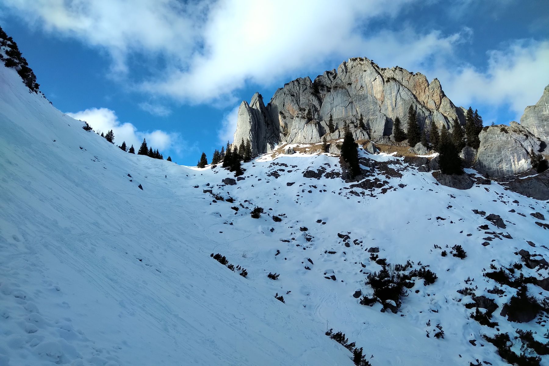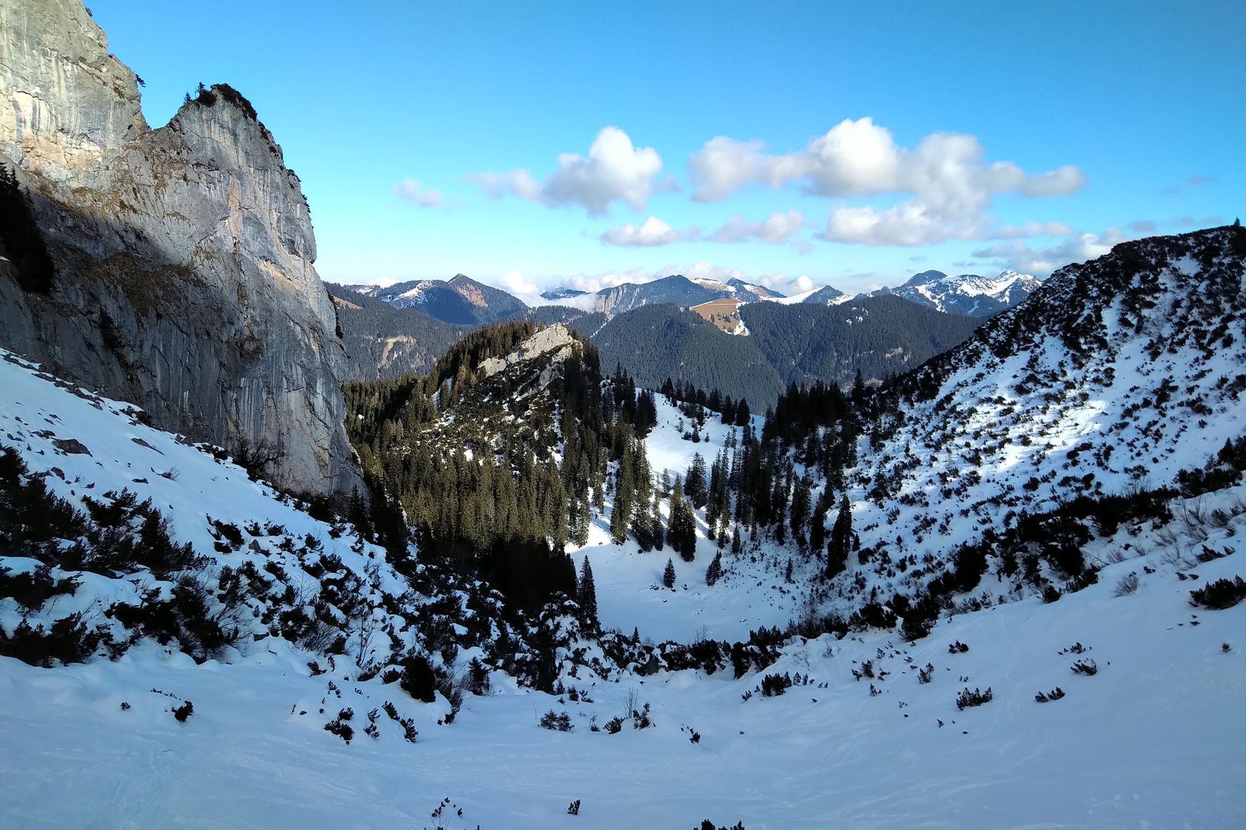 Aber immerhin ist die Runde in beide Richtungen ohne abzuschnallen machbar! Das macht Hoffnung auf eine schöne Begehung nach den nächsten Neuschneefällen.