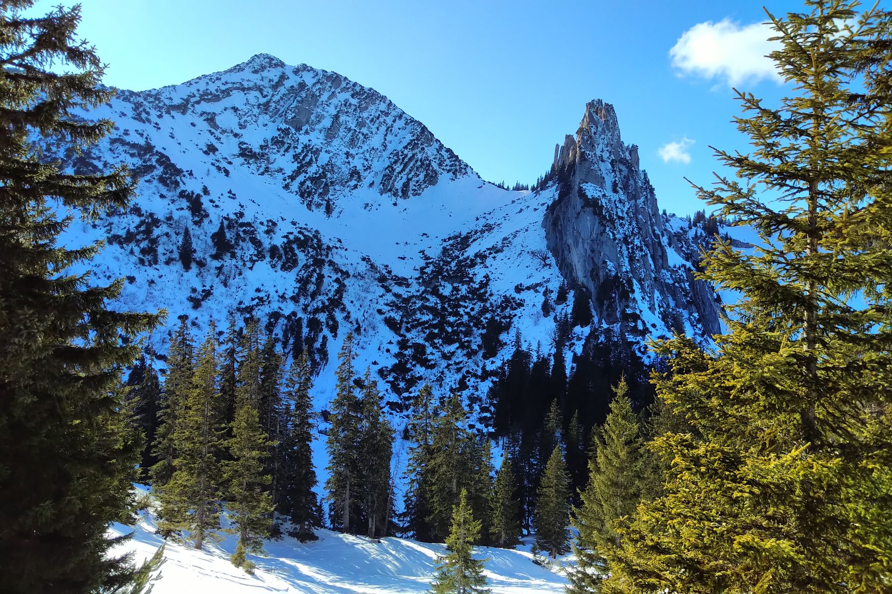 Blick vom Riederecksattel zurück Richtung Risserkogel, Blankenstein und Sattel: