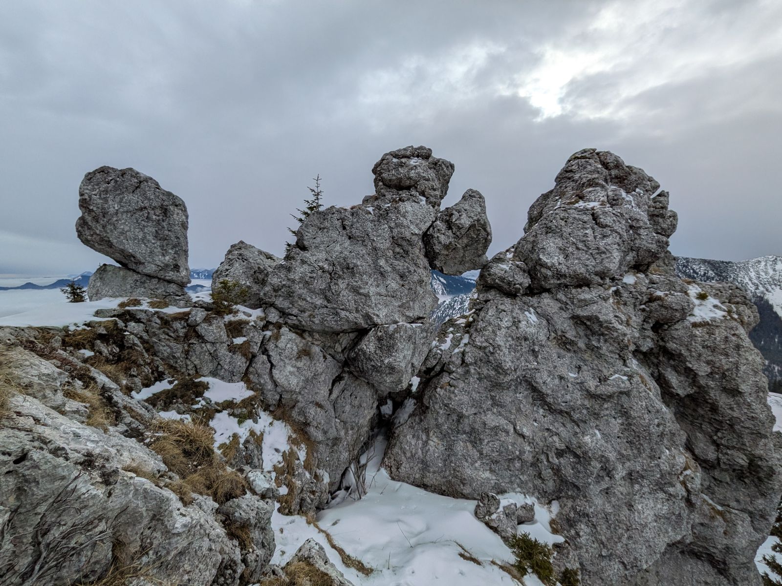 Aufstieg durch das Zeiselbachtal, zunächst aper, später Blankeis, Grödeln erforderlich. Ab dem Zusammentreffen mit der Forststraße aus dem Söllbachtal bis zum Gipfel auf dem Weg 614 keine Grödeln mehr notwendig, ebenso wenig auf dem Aufstiegsweg durch das Söllbachtal, den ich abgestiegen bin.