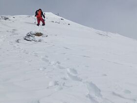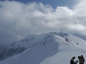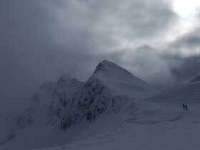 Von dort aus bei gerade so ausreichender Schneelage eine sehr schöne Pulverabfahrt mit genug Platz für eigene Spuren.