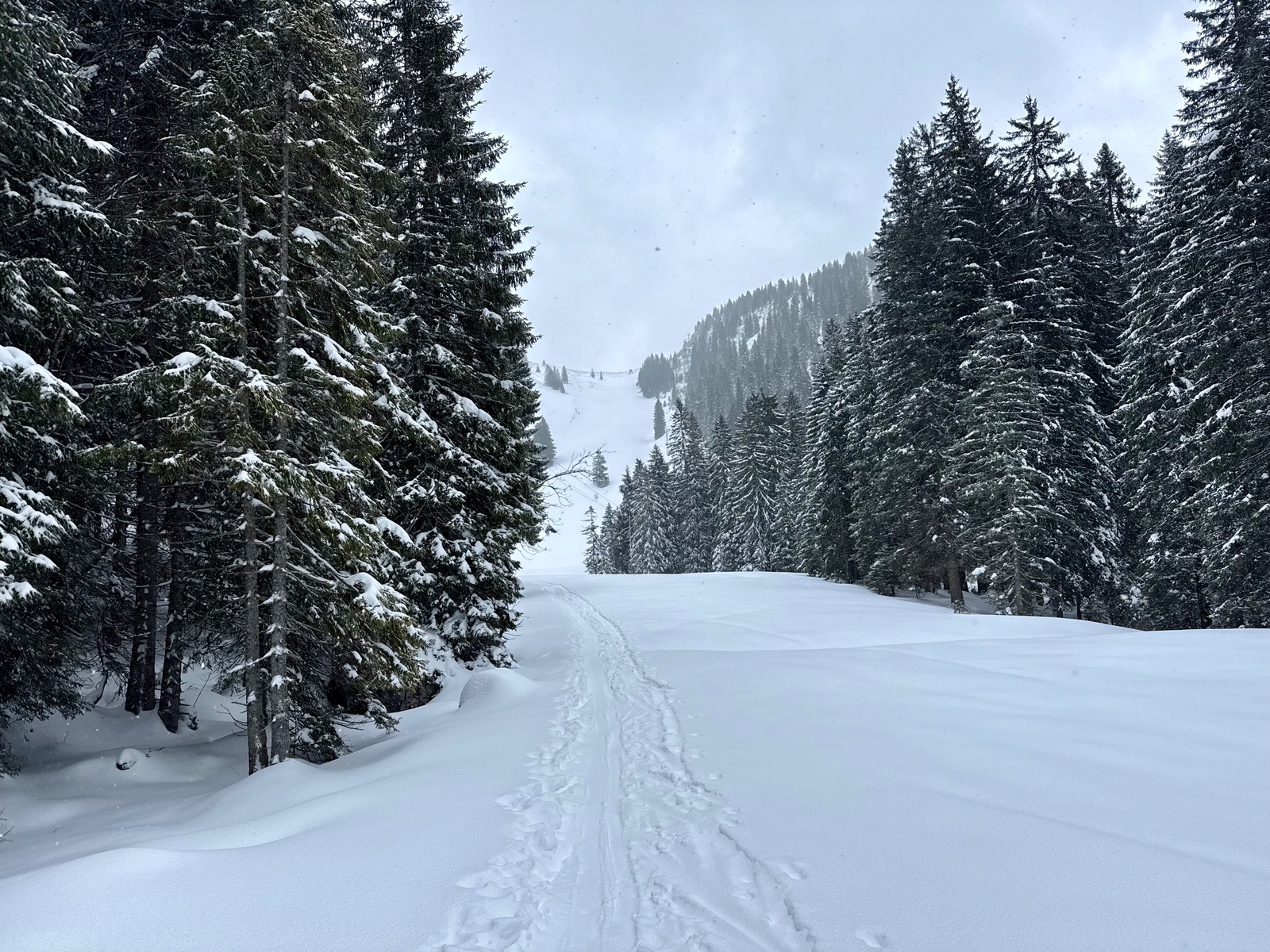 Es hat heute den ganzen Tag geschneit am Spitzing und die Temparaturen waren unter 0 !! Leider ist der Schnee etwas schwer und es hat teils ordentlich geblasen. Bin bei Schnee und Wind erst auf den Rauhkopf. Am Lochgraben nochmal die Felle drauf und mit heftigem Rückenwind hoch zum Taubenstein. Lies sich alles gut fahren, hat trotz S..wetter Spaß gemacht