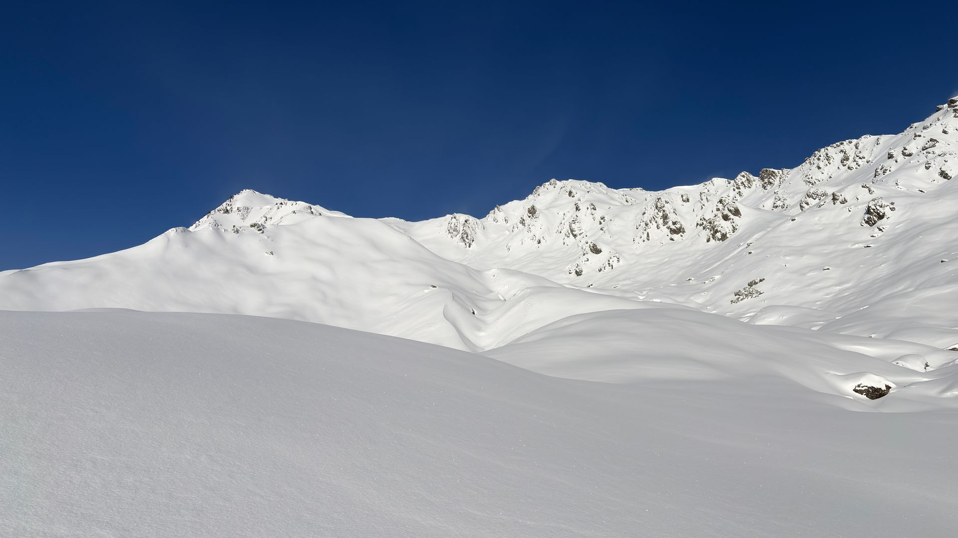 Die Rinne hoch zum Hochplateau war zum Glück sehr gut gehbar, da es keinen Triebschnee hineingeblasen hat. Oben auf dem Plateau (so ab 2200hm) war der Windeinfluss nun deutlich zu sehen und beim Betreten größerer Triebschneeansammlungen gab es auch diese unschönen "Wumm" Geräusche (Aufgrund fehlender Steilheit aber auf dem Plateau kein Problem). Ein Kollege den ich später am Parkplatz getroffen hatte, hat mir auch von diesen Geräuschen beim Aufstieg zum Kastenwendenkopf erzählt und deswegen die Tour abgebrochen. Nach einer nur kurzen Rast am Gipfel (viel Wind) ging es dann die traumhaften Hänge im besten Pulver wieder runter. Am liebsten wäre ich nochmal hoch - aber da zog das Wetter schon wieder zu. In Summe ein toller Tag.