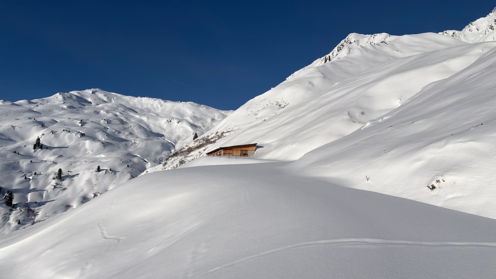 Kurz vor 07:00 an der Erlauer Hütte gestartet (mußte noch kurz warten, bis der Parkplatz geräumt worden ist - danke auch für die frühe Räumung der Straße in den Langen Grund!). Ab dem Parkplatz bis zur Seefeldalm gute 30cm Neuschnee. Allerdings ohne Unterlage was mir bei der Abfahrt eine Feindberührung eingebrockt hat. Auf dem Bild die Seefeldalm