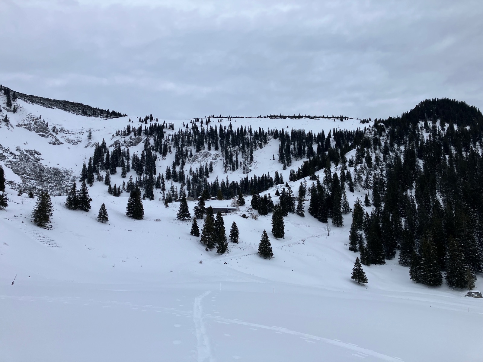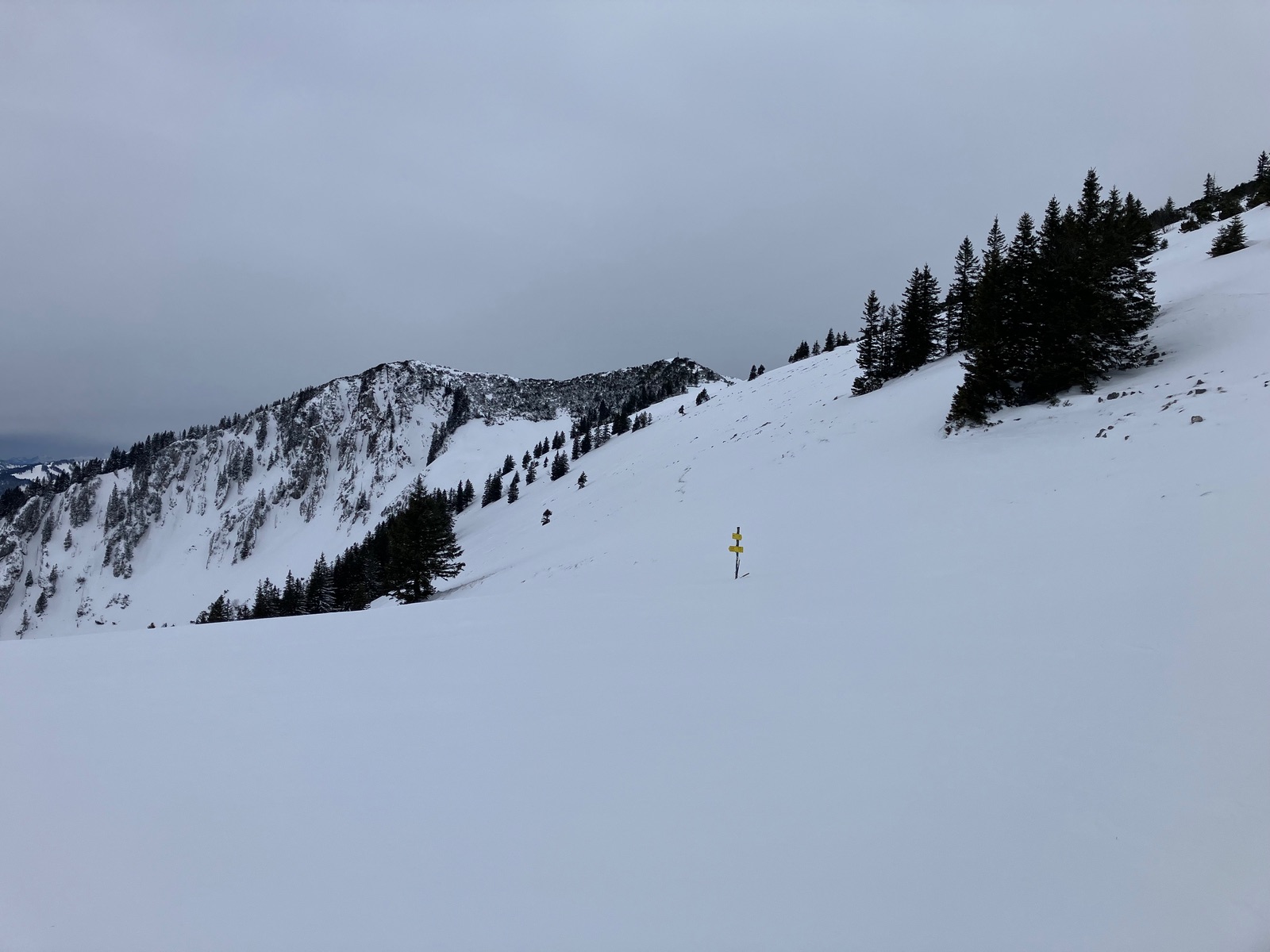 Ab 10 Uhr dann deutliche Wetterverschlechterung mit einsetzendem Schneefall. Der kann m.E. auch nicht schaden, weil so richtig üppig ist die Schneelage (gemessen an den Verhältnissen "normaler" Winter) auch wieder nicht.