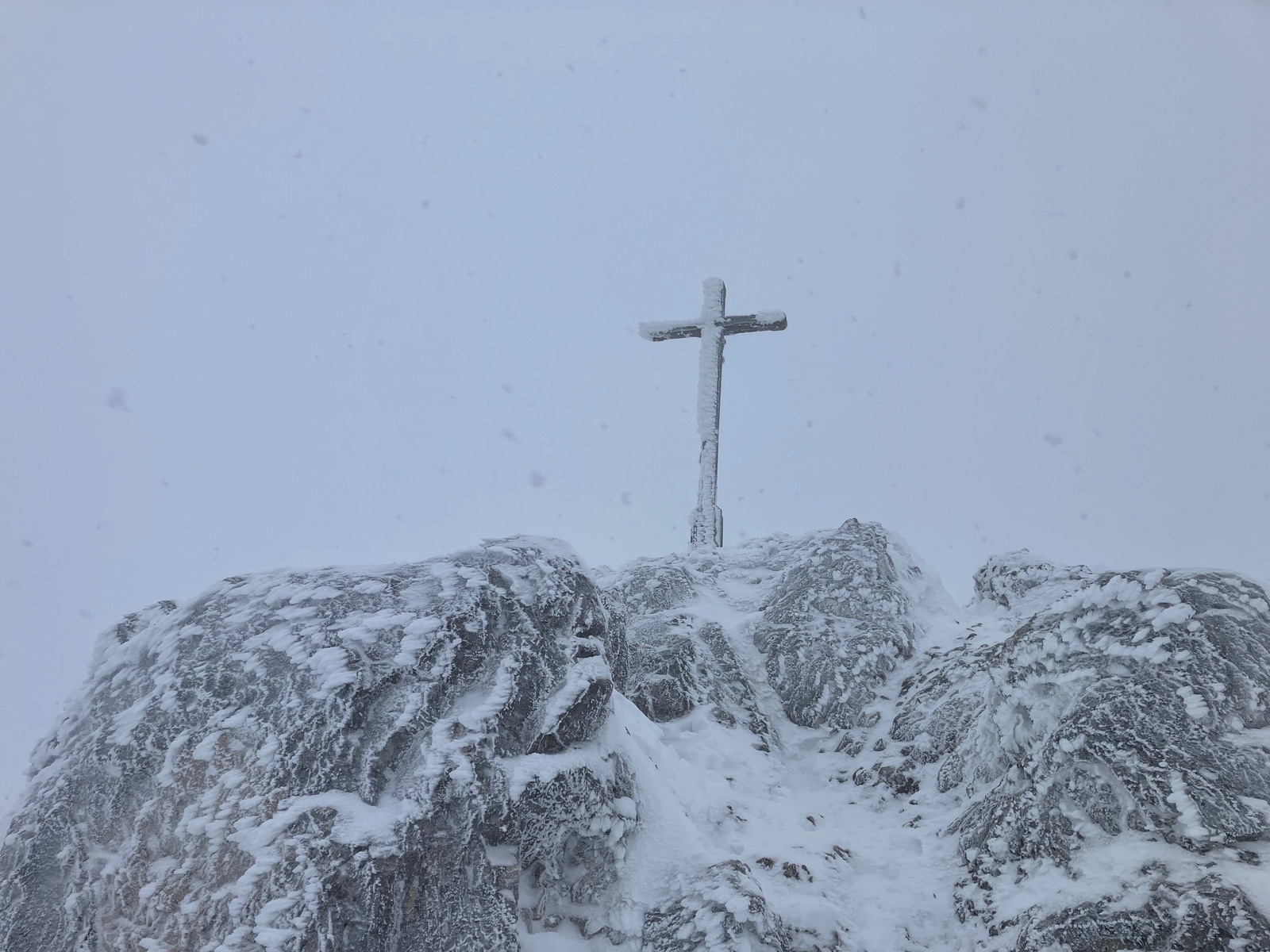 Gipfelkreuz Lacherspitze - heute nicht zur Gipfelrast einladend: