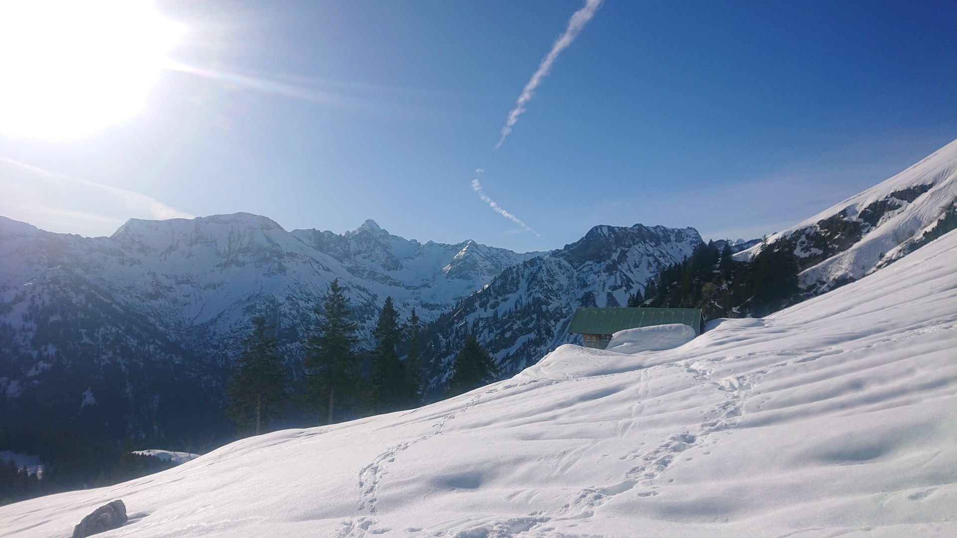 heute bin ich mal wieder auf den großen Daumen gestiegen (größtenteils Süd Expo), da ich keine Lust hatte auf bockharte Verhältnisse im Schatten. Bin von Bad Hindelang mitn Radl zum Giebelhaus (14km knappe 300hm, ab Hinterstein 6km weniger), was problemlos ging (kaum überfrorene Stellen). Hoch bin ich den Fahrweg zum Schwarzenberg gegangen. Bis auf eine ganz kurze Stelle war noch alles mit Schnee bedeckt. Ab der Käseralpe ging es dann kurz vor 9 in die Sonne und es wurde sofort ordentlich warm. Über die übliche Route zum Gipfel war es problemlos möglich ohne Harscheisen aufzusteigen. Morgens waren die tlw. vorhandenen Regenrillen bis vllt 1800-1900m an den etwas härteren Stellen etwas nervig. Aus den Flanken der Laufbichlkirche sind schon einige mehr oder weniger große Lawinen abgegangen, etwas Abstand kann hier nie schaden. Irgendwie hat sich dann im Aufstieg der Kontrast von meinen Handydisplay verstellt und ich konnte einige Zeit keine Bilder machen. Bin dann ca. 10:30 abgefahren zum Engeratsgundsee in tollem Firn die 400hm. Bis dorthin waren kaum Regenrillen im Schnee. Am See dann erneut aufgefellt und noch zweimal die guten 320hm auf den Kleinen Daumen angehängt. Auch hier herrliche Firnverhältnisse bei den Abfahrten. Um 12:30 gings dann vollends runter, bis 1700m war alles noch top zu fahren, unter 1600m wars schon recht weich. Von der Käseralpe hab ich mich mehr schlecht als recht direkt runter ins Obertal manövriert, weil der Kollege aufm Kleinen Daumen meinte das ginge noch ganz gut. Über den Schwarzenberg wäre hier jedoch besser gewesen. naja danach ischd man immer schlauer ![]()
