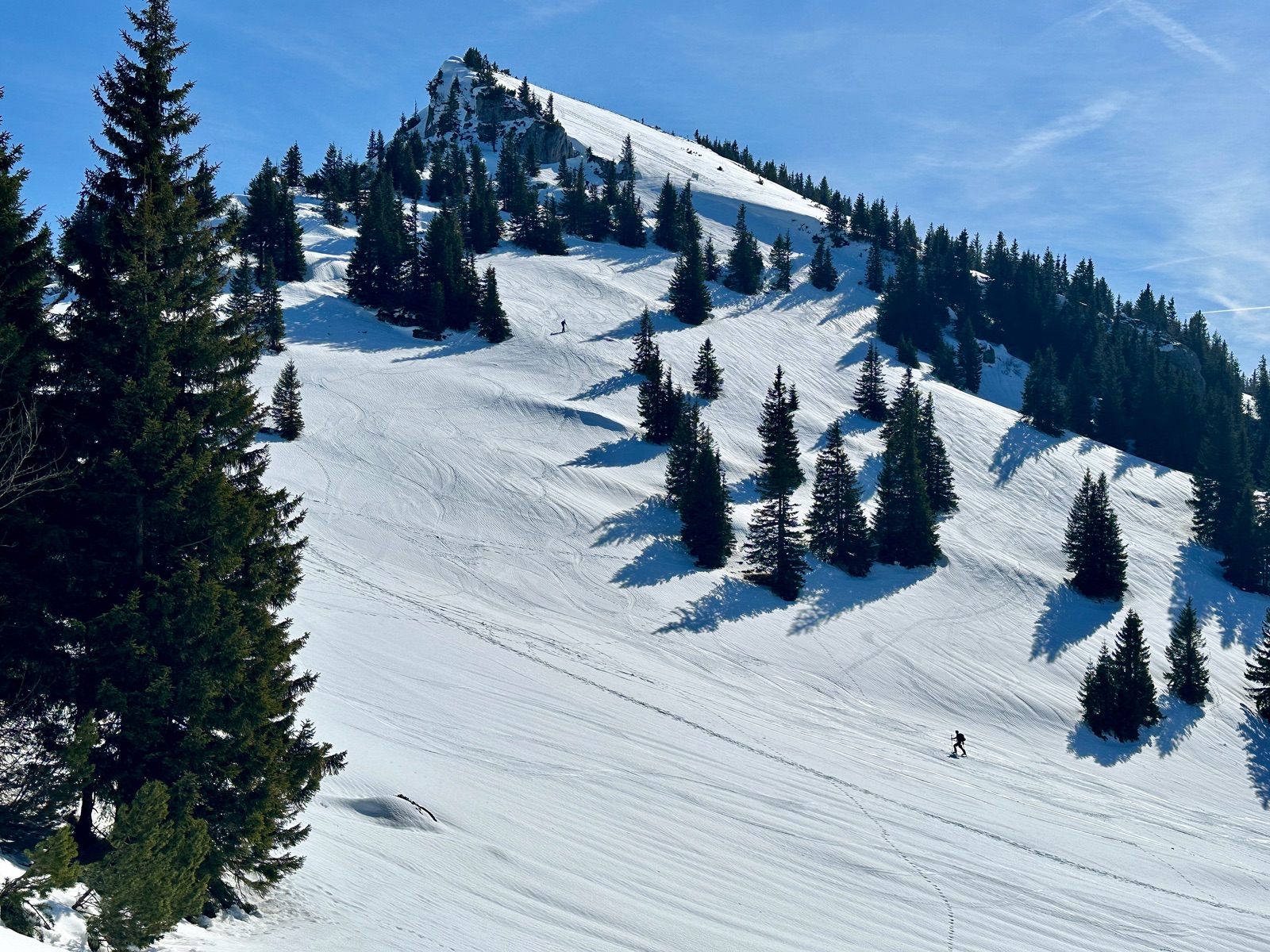 Nach den Regengüssen zu Wochenbeginn fragten wir uns: Wie werden die wohl die Schneedecke in den Hausbergen beeinflusst haben? Der Praxistest am Spitzingsee ergab: Es hat sich eine kompakte Schneedecke gebildet, überwiegend herrschen echte gute Firnverhältnisse, je nach Hangexposition tageszeitlich differierend.