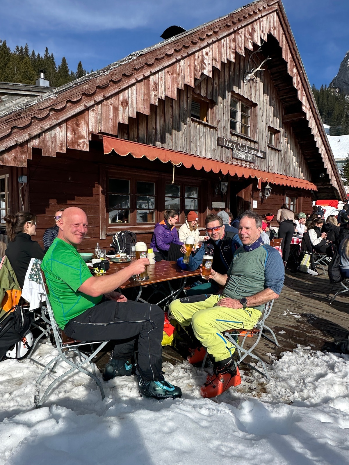 Kleine Überraschung, bei der Unteren Maxlrainer Alm lief der Schlepplift, zwei Fahrten 5 Euro. Haben wir gemacht, den Firn genossen sowie danach das Bier an der Oberen Maxlrainer Alm.