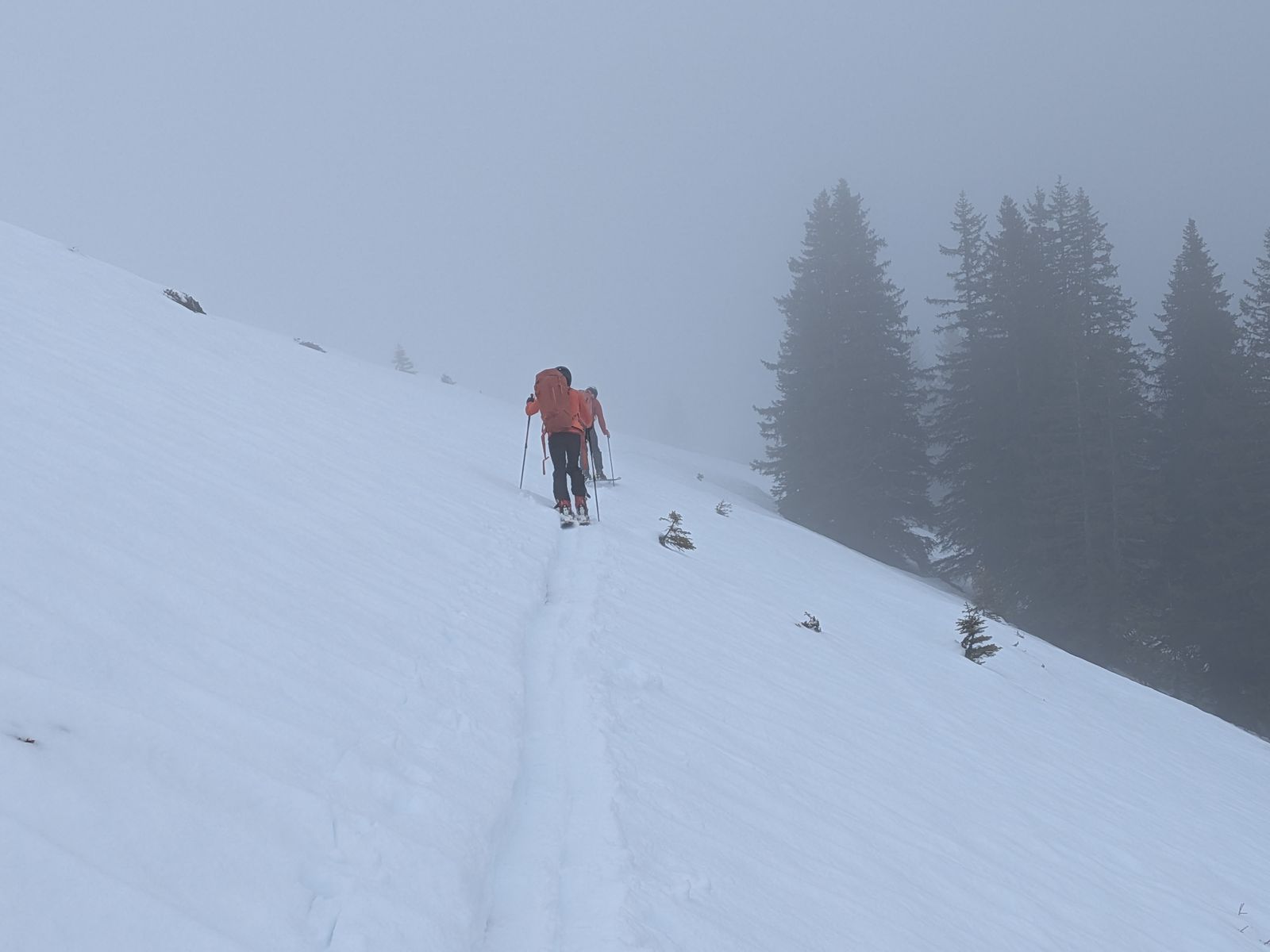 Bei der Abfahrt kamen wir erst im unteren Bereich aus den Wolken raus und hatten Sicht.