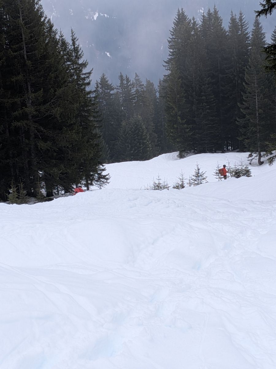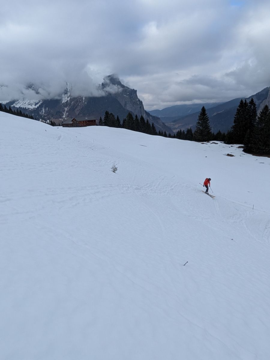 Entsprechend hatten wir von oben bis unten tiefen, weichen Schnee,der aber doch überraschend brauchbar zu fahren war.