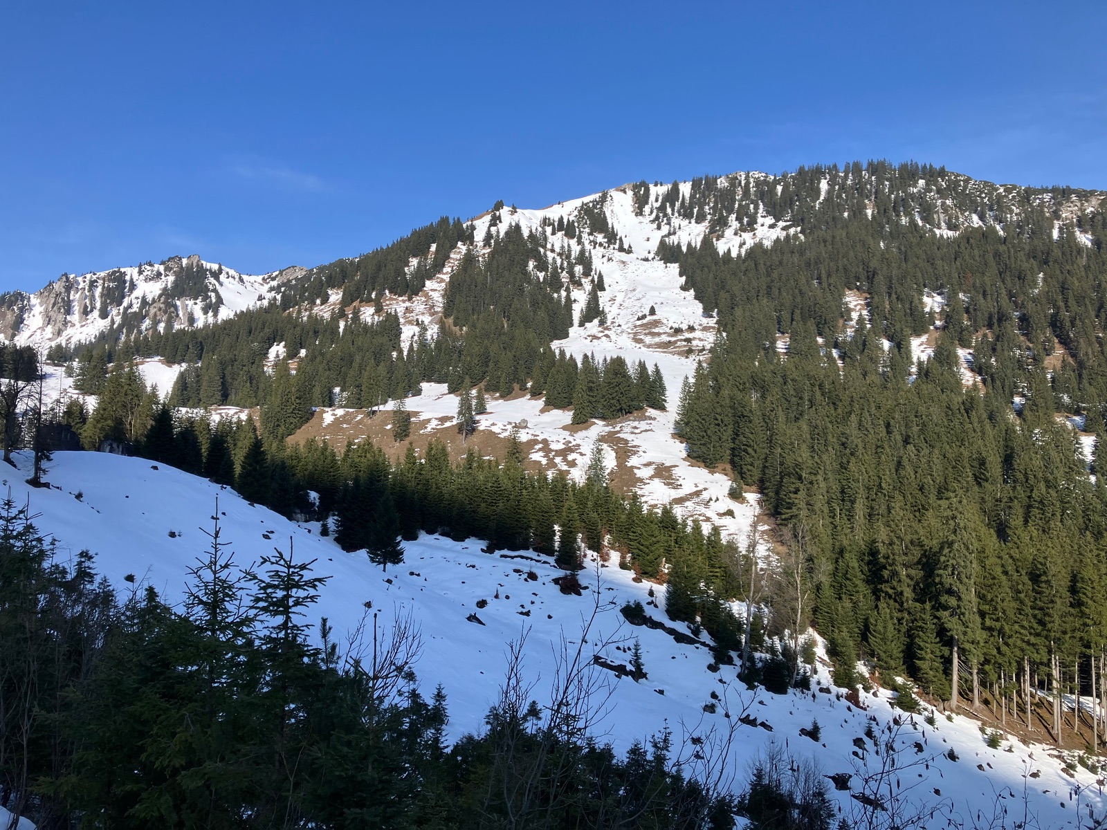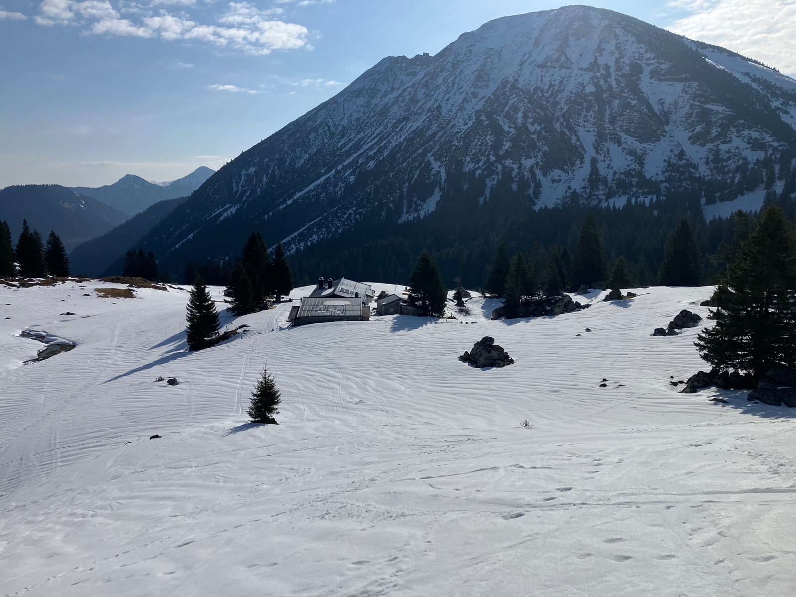 Insgesamt ist bei den derzeitigen Verhältnissen die Abfahrt ins Leitzachtal natürlich eher mäßig - ich wollte sie nach ein paar Jahren aber mal wieder machen und die Aussicht auf harte Verhältnisse im Unteren Lochgraben am Vormittag erschien mir auch nicht so berauschend. Wer später startet, dürfte natürlich weichere Schneeverhältnisse vorfinden.