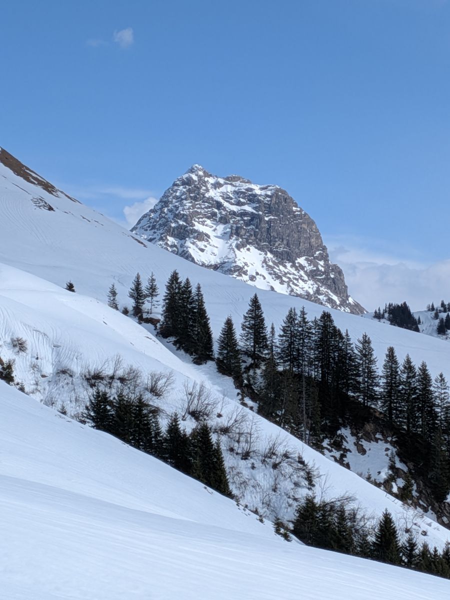 Nachdem es am Montagmorgen entgegen der Wetterprognose doch sonnig und die Nacht klar war, haben wir uns für diese Tour (um)entschieden. Allerdings braucht es am Ausgangspunkt schon etwas Vertrauen in verfügbare aktuelle Informationen, namentlich zum Grad der Schneebedeckung auf der Tour, denn von unten sieht man nur den Schnee in der Gipfelregion.