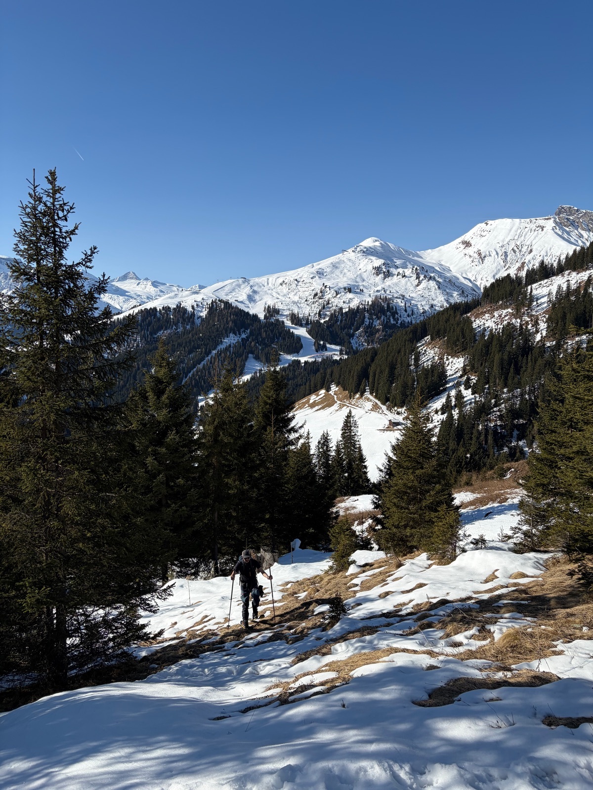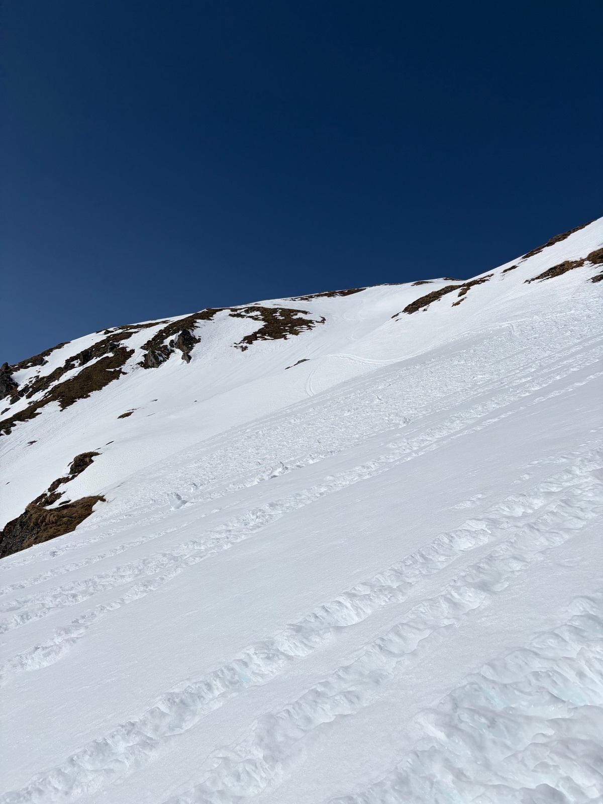 Wir sind um kurz nach 12 Uhr abgefahren. Zu Beginn direkt südöstlich vom Gipfel (nicht Aufstiegsspur). Man kann sich seinen Weg hier gut durch die Felsen und Wiesen suchen. Altschnee gibt es hier keinen mehr, was natürlich gut ist. Im weiteren Verlauf dann weit westlich des Weges abgefahren und zum Schluss in Richtung Lämmerbichlalm rüber gequert. Man könnte aber auch noch ein gutes Stück weiter abfahren. Da es weiter unten dann aber doch wenig Schnee ist, haben wir uns für die "Ausfahrt" auf die Piste über den Forstweg entschieden und sind dann übers Skigebiet zur Waldhütte (Skihütte) abgefahren und 500 m über die Straße zum Auto zurück gelaufen.