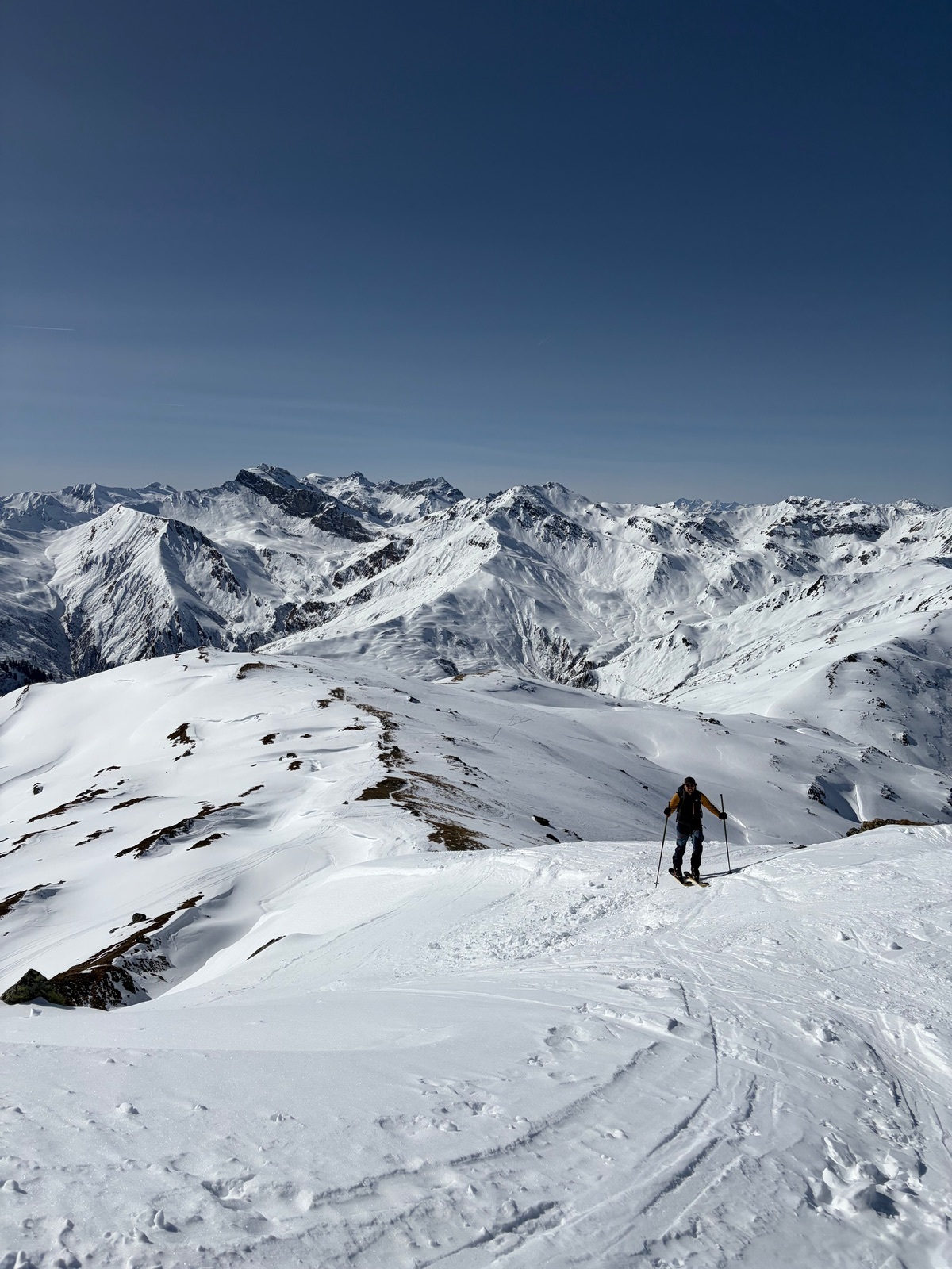 Insgesamt Frühlingsbedingungen mit wirklich schönem Firn, der unten dann natürlich etwas in Sulz überging, wir waren ja etwas spät dran. Sowohl für den Ausblick, als auch die lohnende Abfahrt eine gelungene Tour, die sicher noch ein paar Tage ähnlich gut geht.