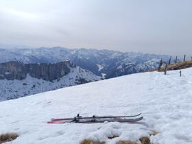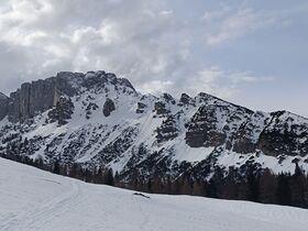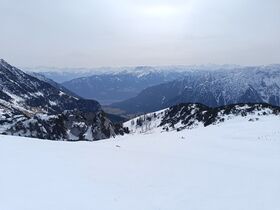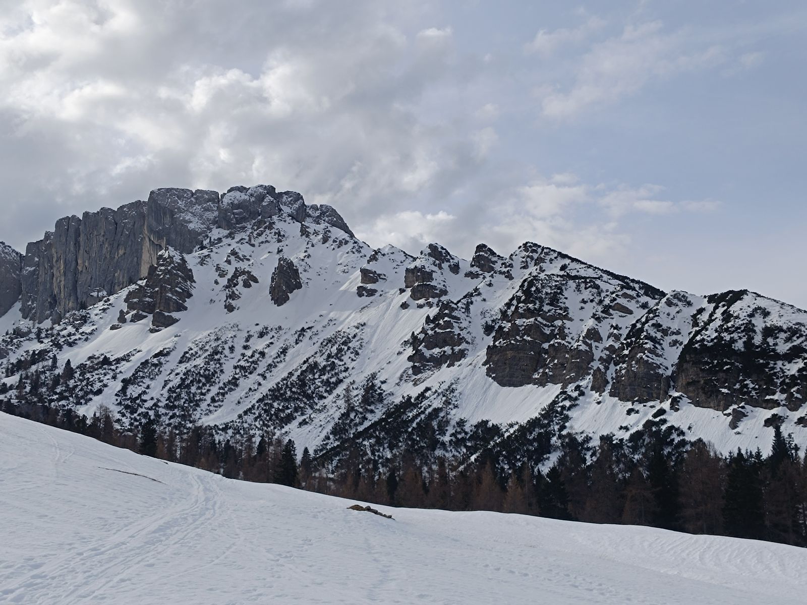 Ich bin zunächst zum Kotalmjoch (Harscheisen ab der Steilstufe vor dem Kotalm-Hochleger sehr gewinnbringend, aber nicht zwingend) und dort um 10:45 bei sich andeutendem Firn abgefahren. Warten bis es richtig auffirnt, wollte ich nicht, denn ich hatte ja noch ein bisserl was vor... Am (verfallenen und im Winter unsichtbaren) Hochleger hab ich wieder angefellt und bin Richtung Steinernes Törl. Dort bin ich (beim Wegweiser) um 11:30 die großartige Mulde zur Dalfazer Alm wirklich runtergeschossen: Wechsel von griffig und Firn - großartige Abfahrt! Nun bin ich Richtung Klobenjoch aufgestiegen, also bis zum Sattel, weil der Gipfel skifahrerisch wegen der dichten Latschen keinen Sinn macht. Um 12:15 Abfahrt im Idealfirn - das Ganze gleich nochmal.
