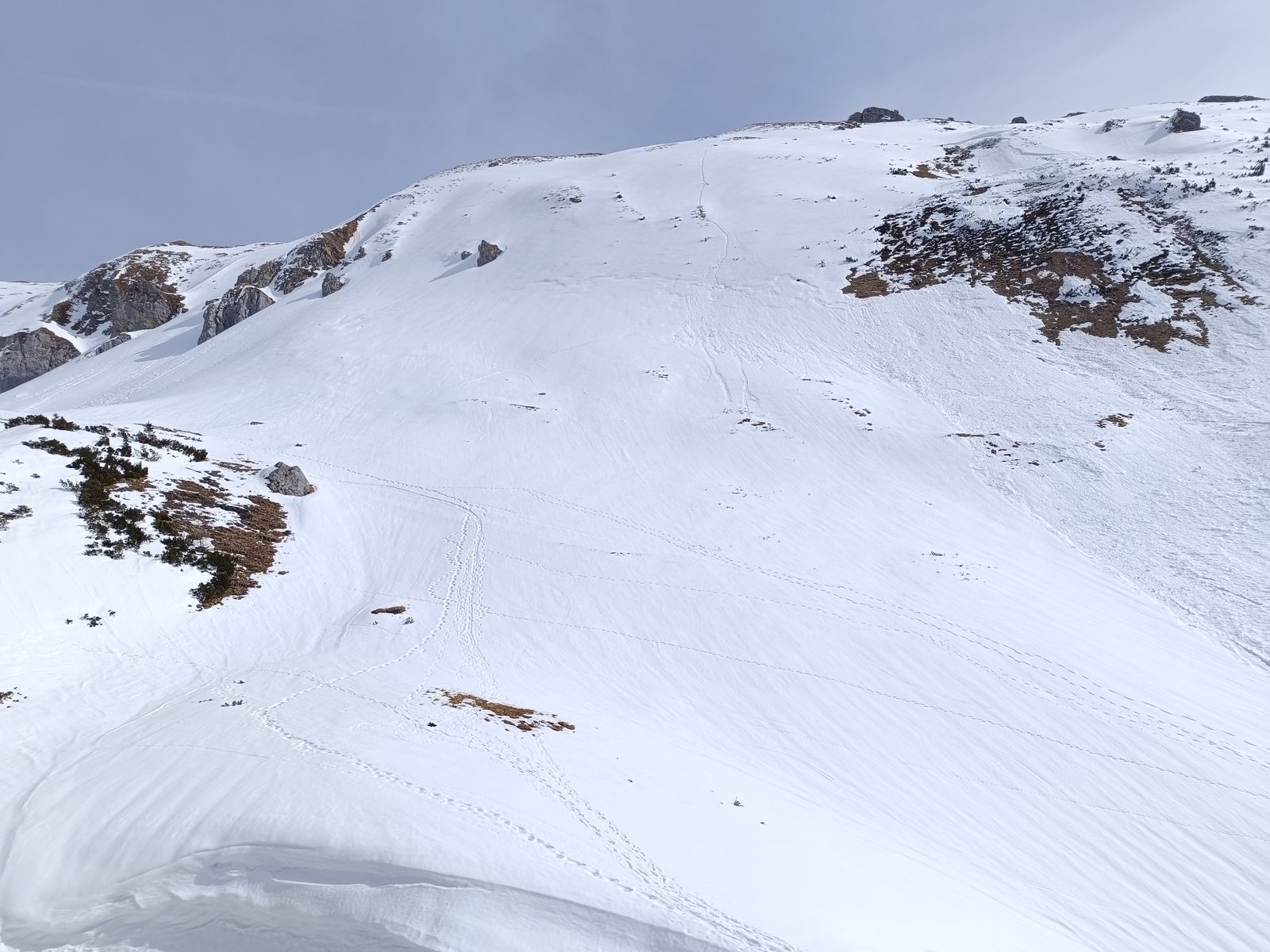 8/9: Dieser potentiell gefährlichen Flanke bin ich am Gegenhang ausgewichen.