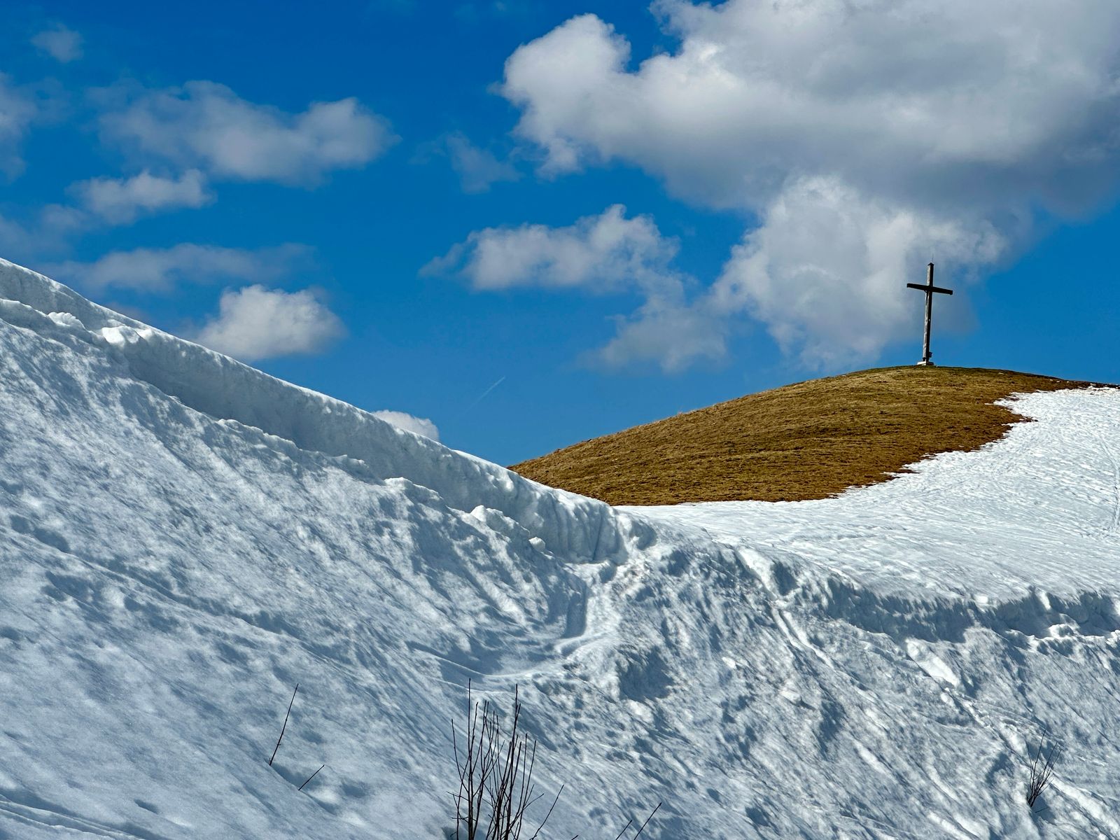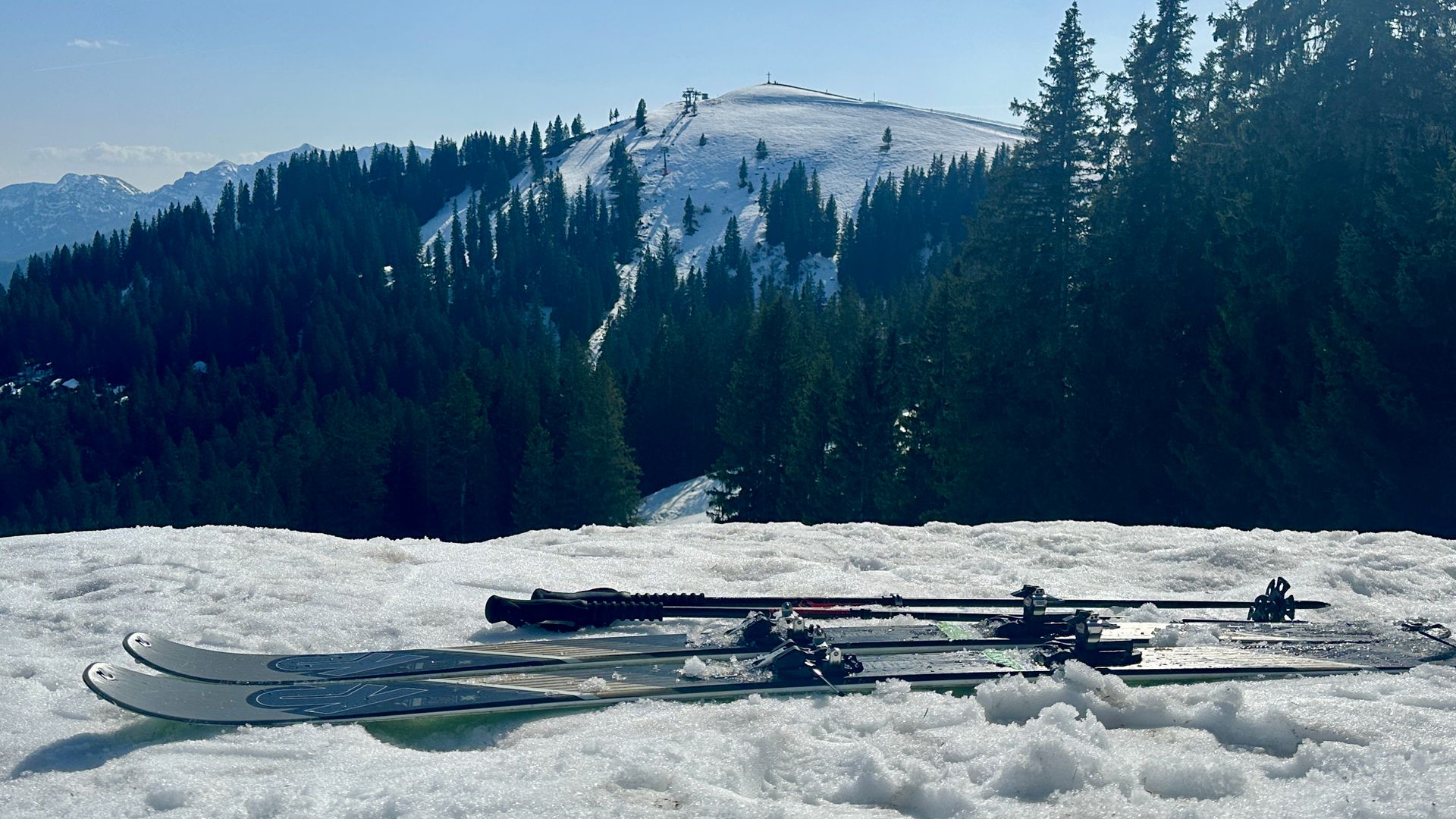 Am Gipfel war ich kurzzeitig sogar allein, ungewohnt für den Roßkopf. Nach der Brotzeit bei schönem Pistenfirn wieder runter zur Sutten. Fazit: geht schon noch ganz gut, und auf der Grünseeroute ist es einsam, keinerlei Liftrubel mehr.