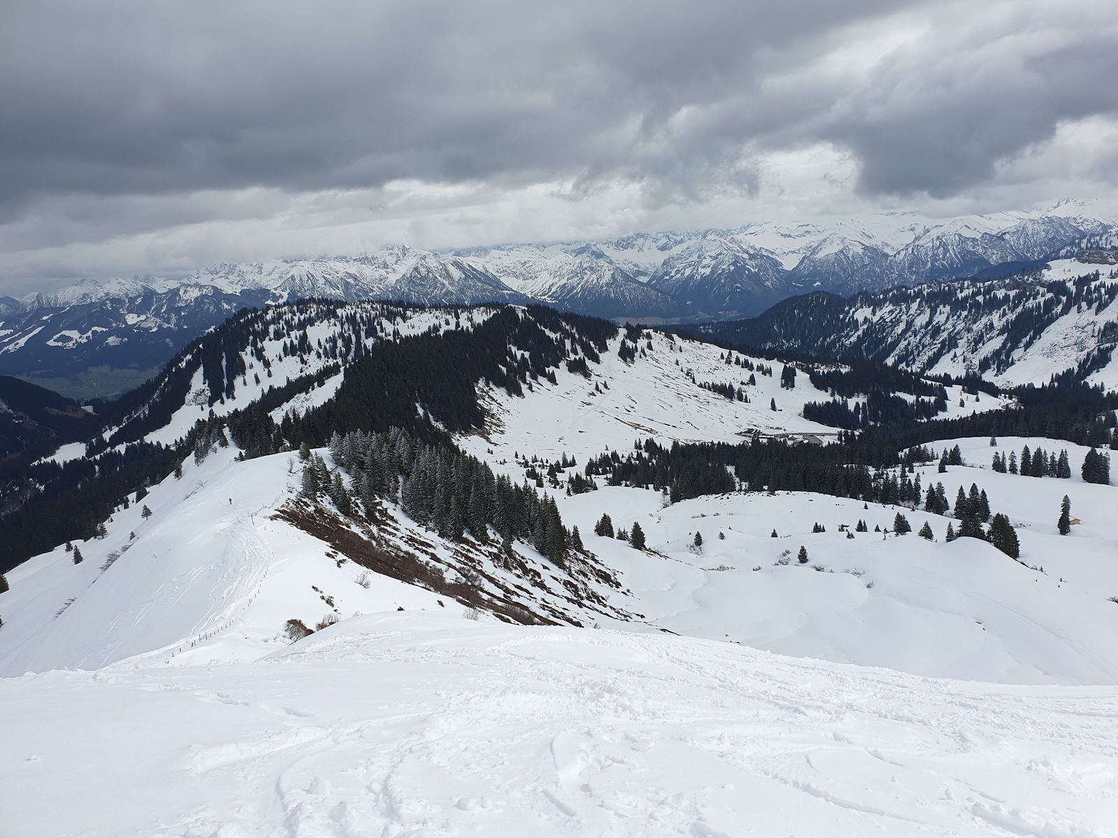 Diesmal die von mir schon öfters beschriebene Route "GG -> Bolgen (links liegen lassen) -> Wannenkopf -> "Lieblingshang" (Richtung Obermaiselstein) -> zurück gleiche Route -> auf Riedberger Horn über blaue Piste, Kessel und Abfahrt direkt runter + blaue Piste zurück. Gesamt ca. 900 hm.