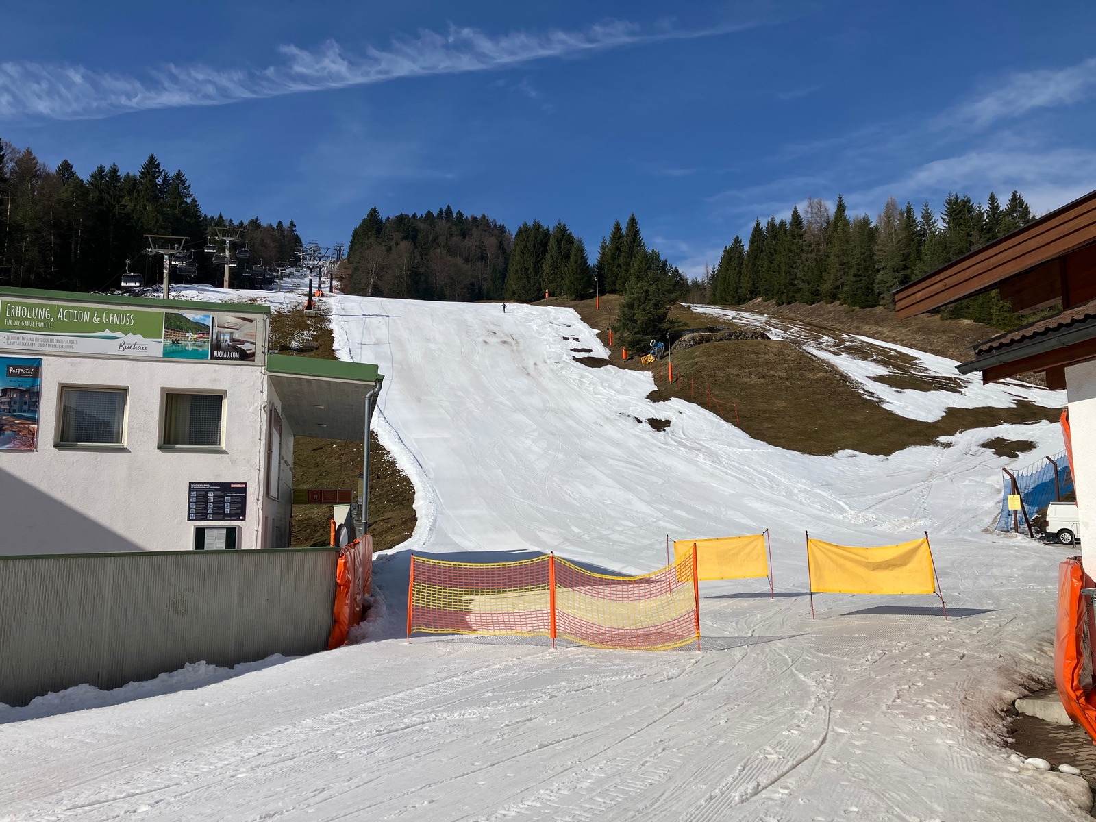 Unten am Start apern sogar die Pisten schon in Teilbereichen aus: