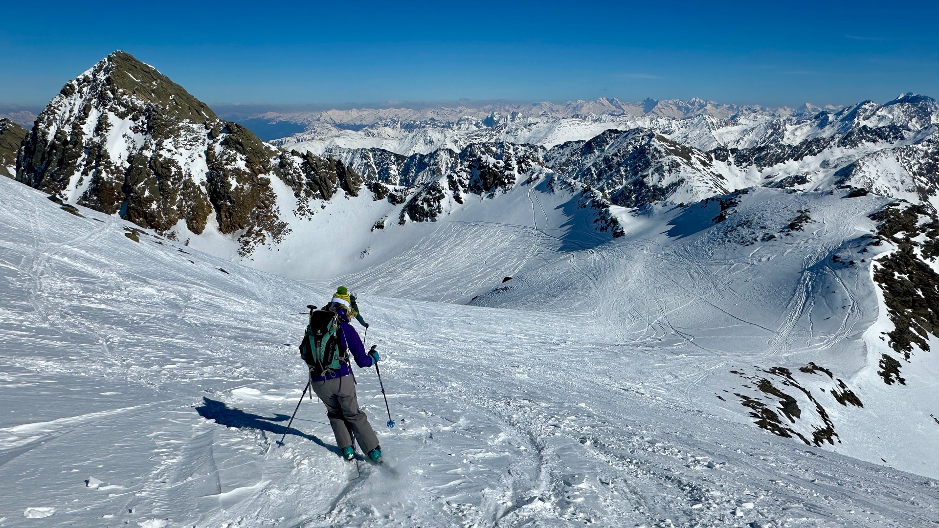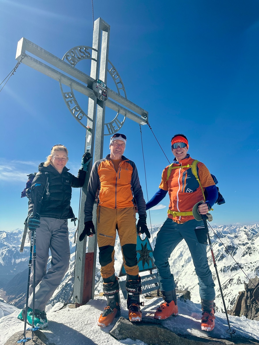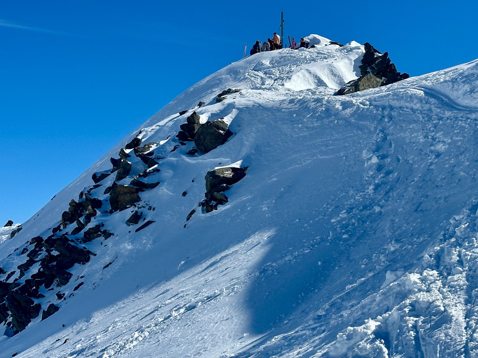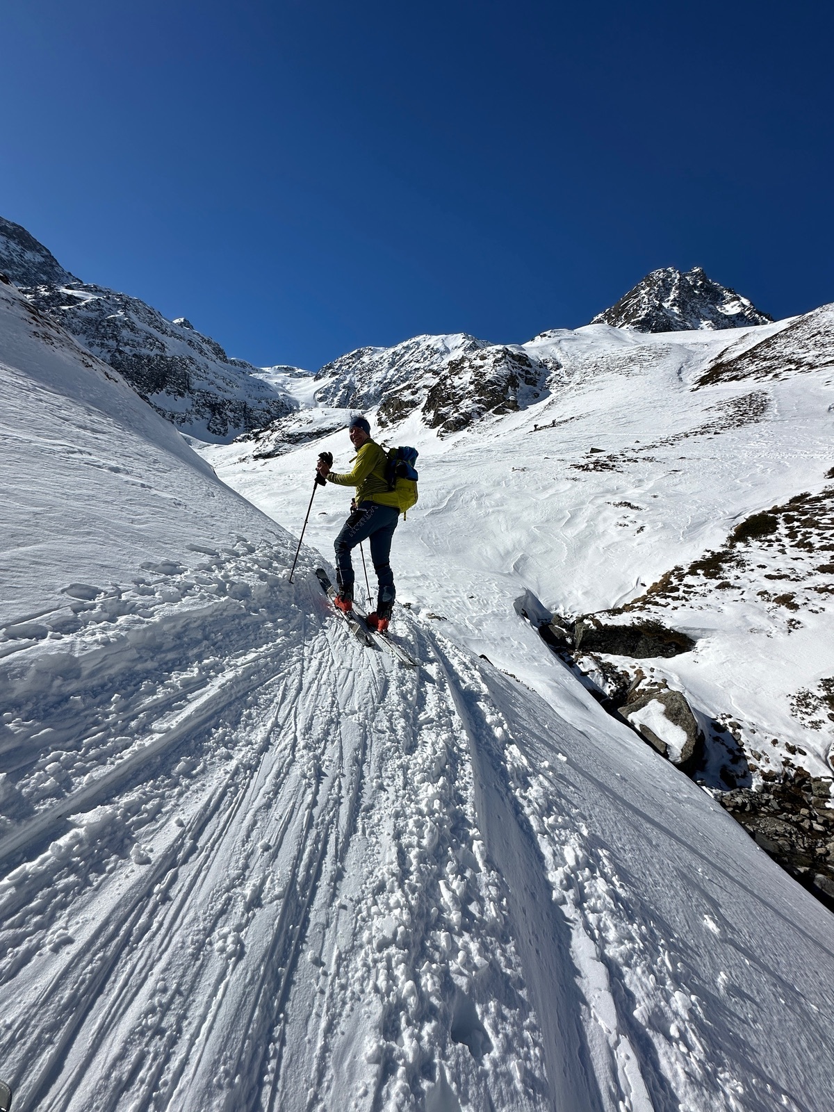 Erste Zwing haben wir mit Harscheisen gemacht, wäre wohl auch ohne gegangen. Komplette Tour sehr griffig. Tolle Fernsicht heute.