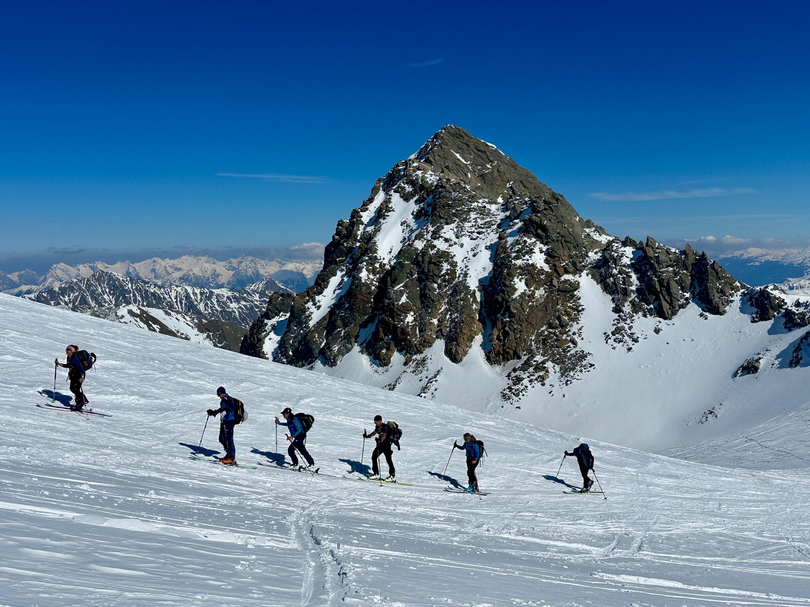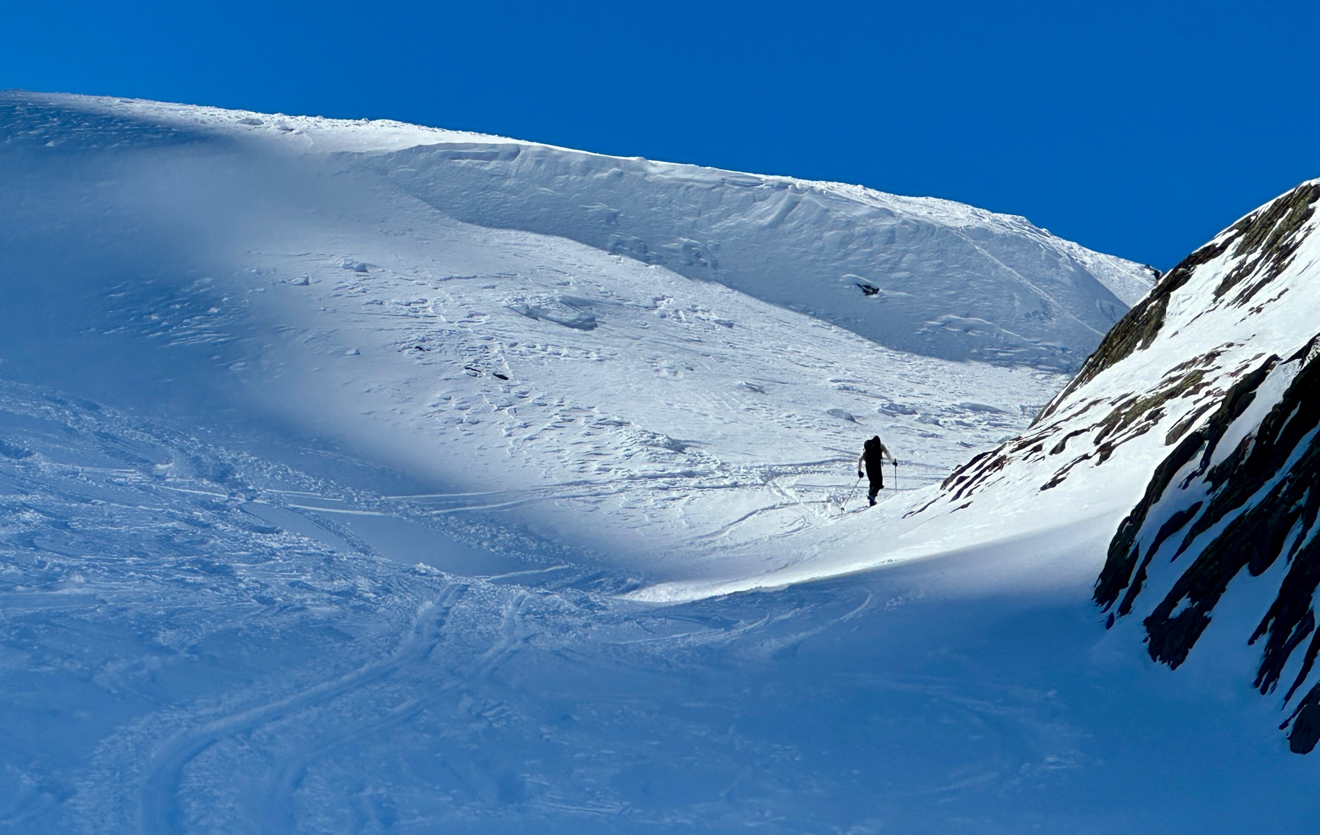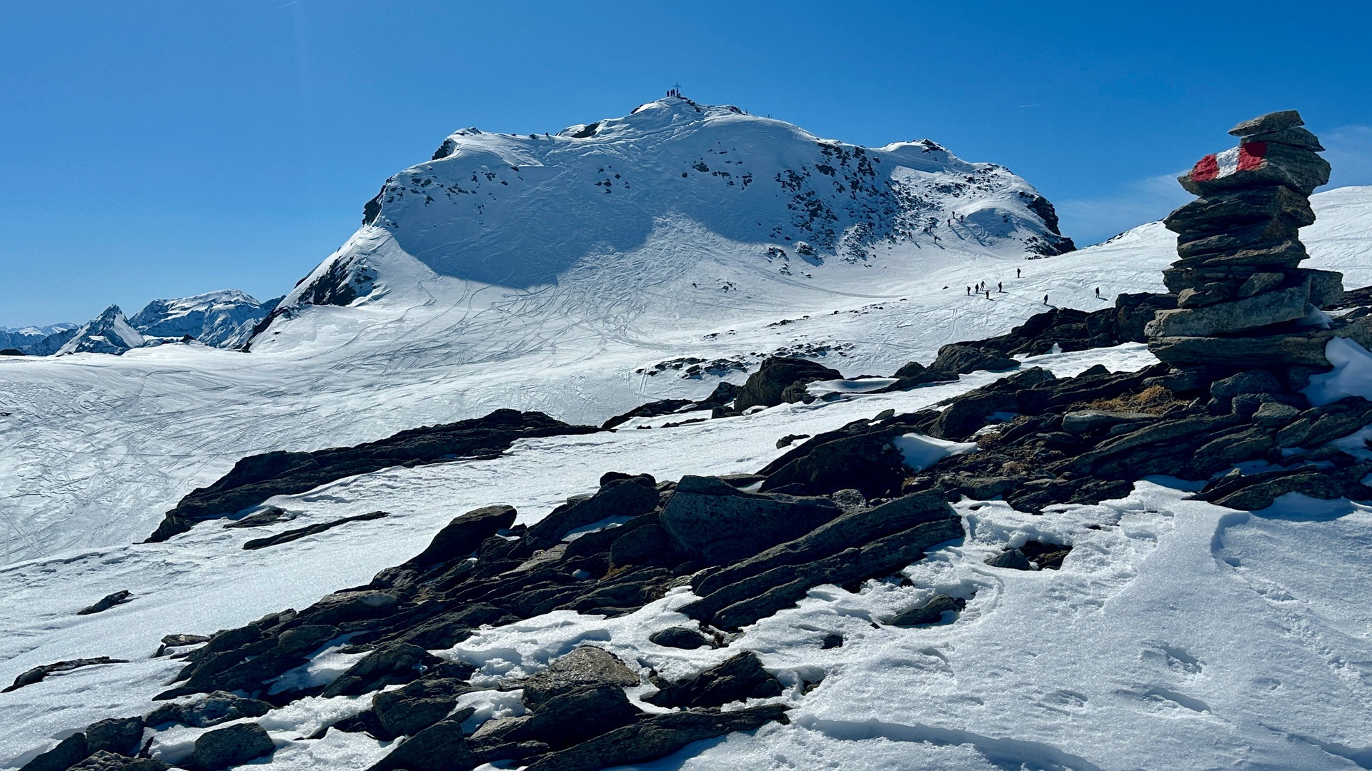 Erste Zwing haben wir mit Harscheisen gemacht, wäre wohl auch ohne gegangen. Komplette Tour sehr griffig. Tolle Fernsicht heute.